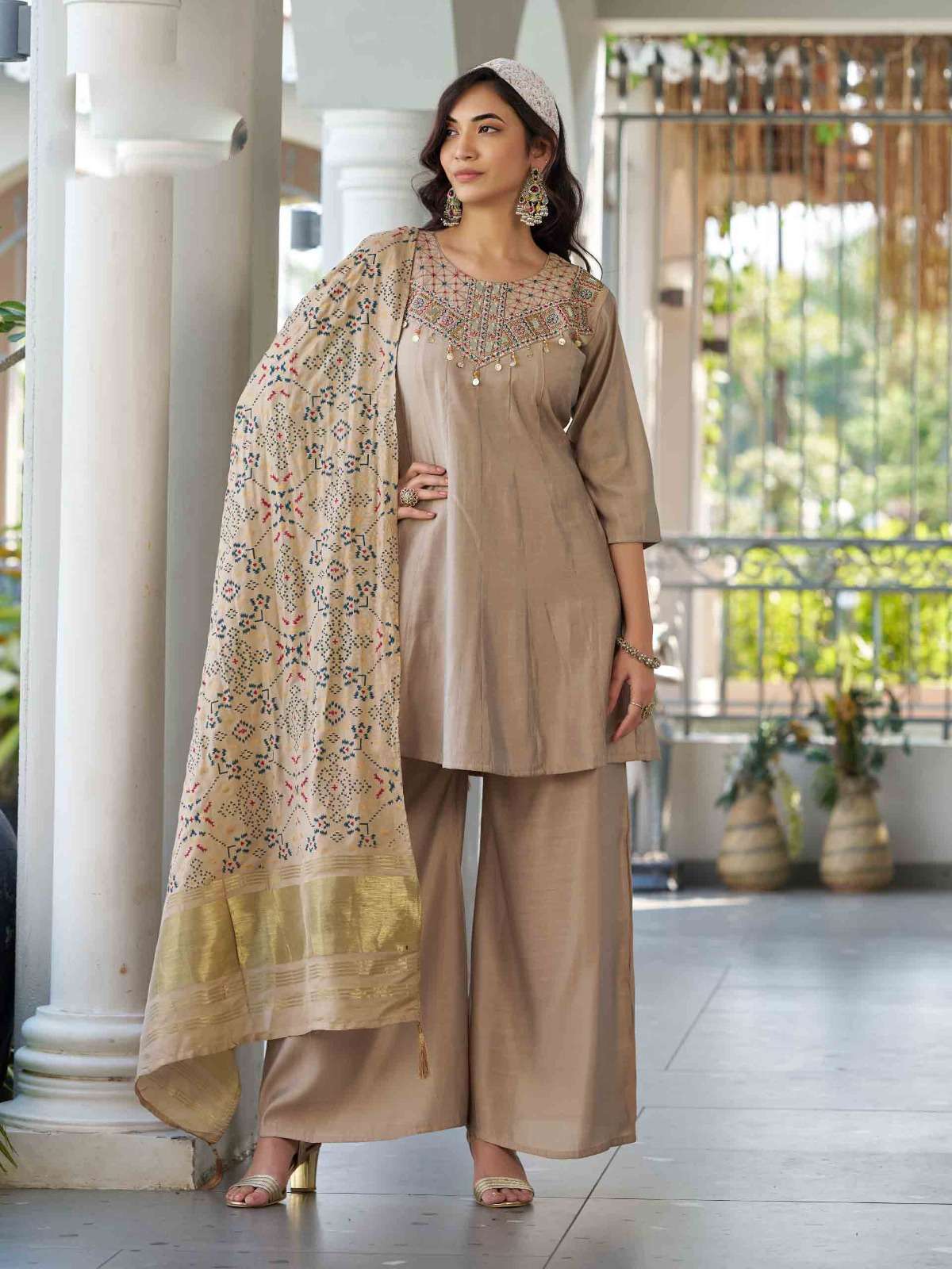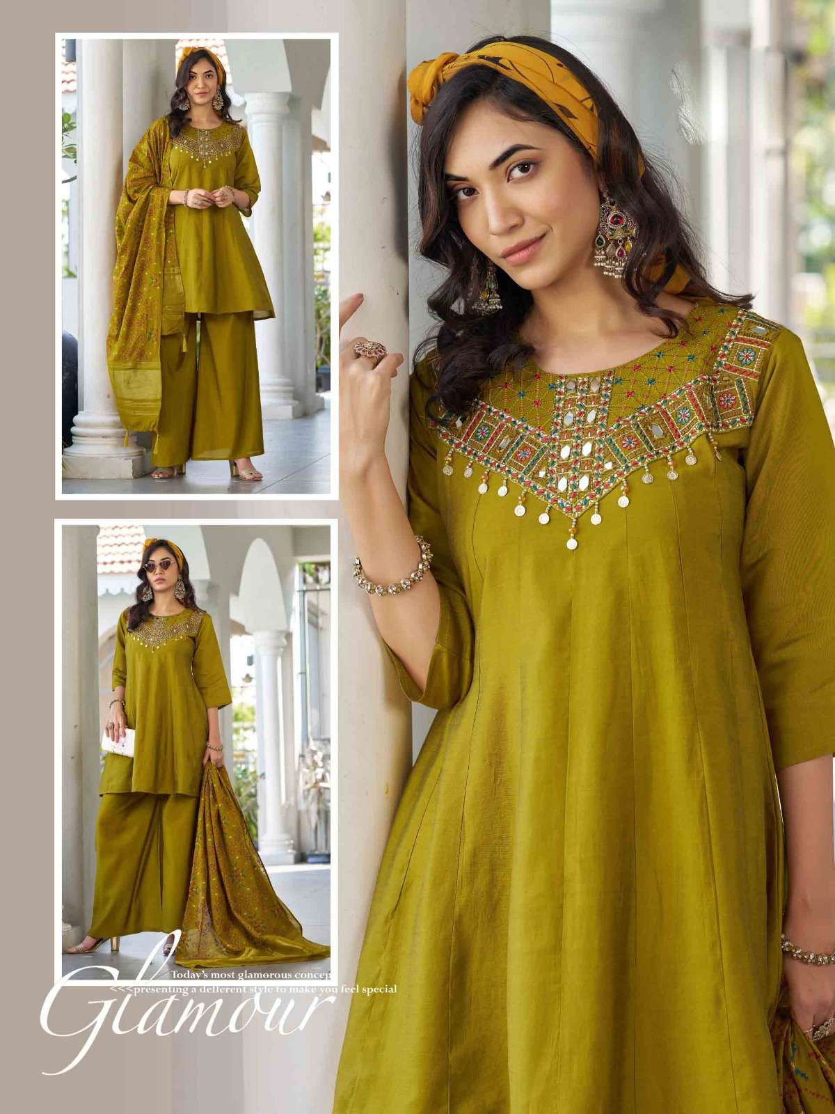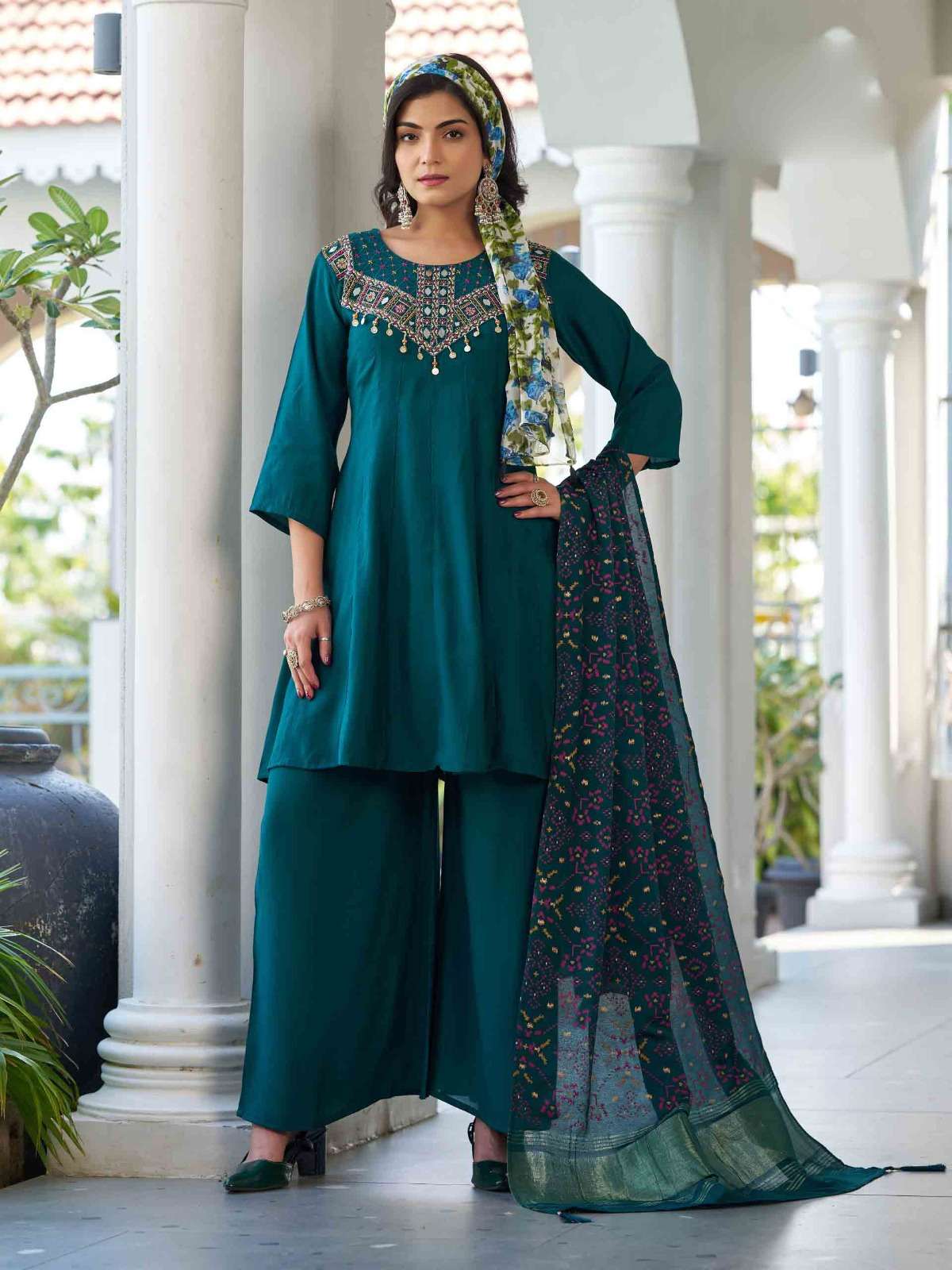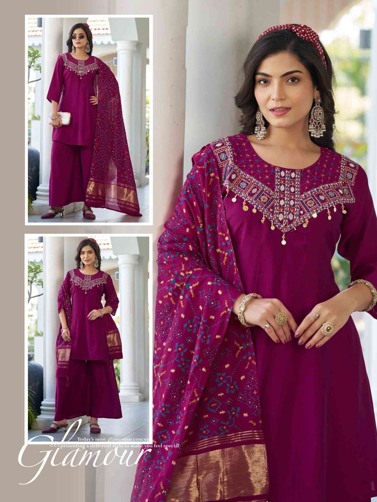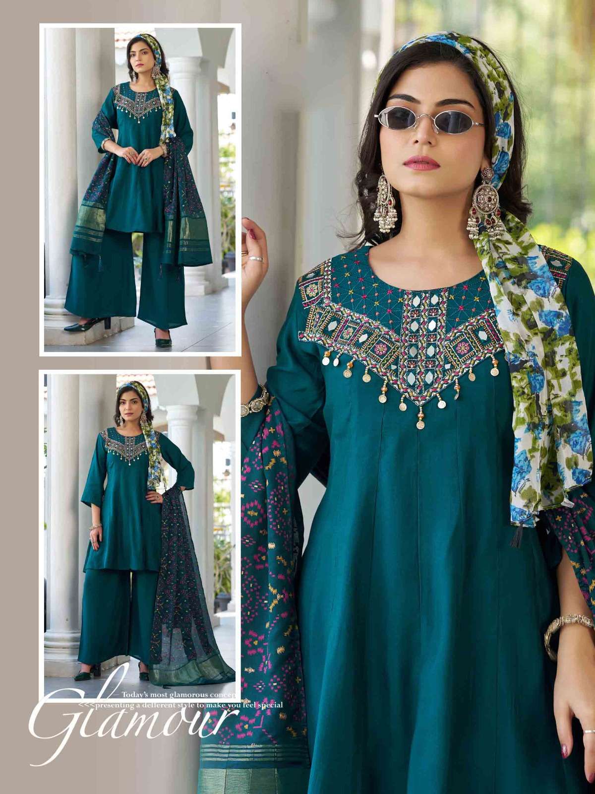 Product Name - Niru gulkayra by krisha premium simar silk with embroidery top with palazzo & dupatta set