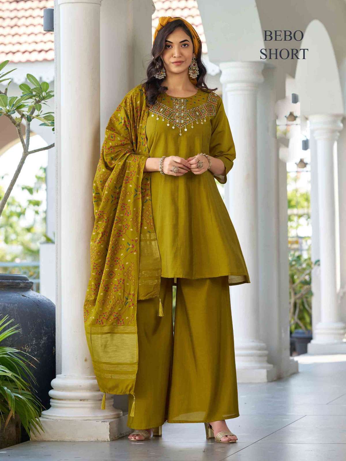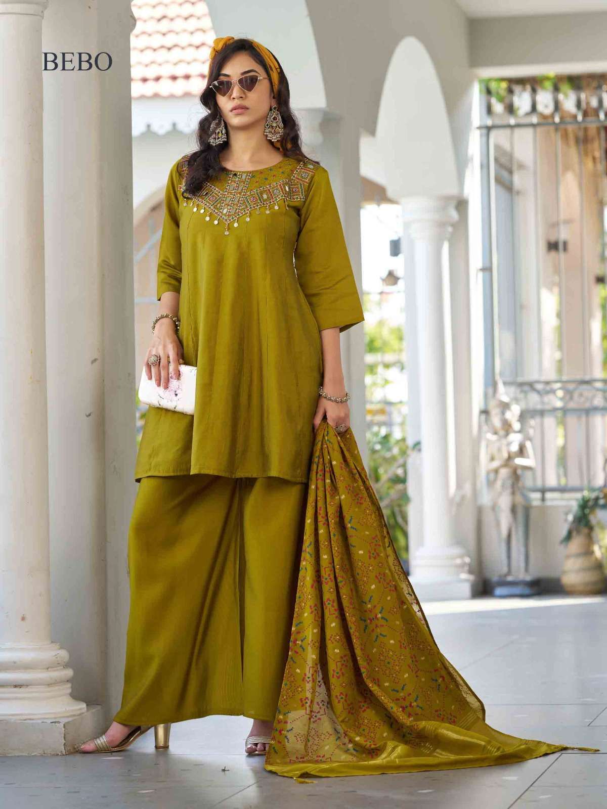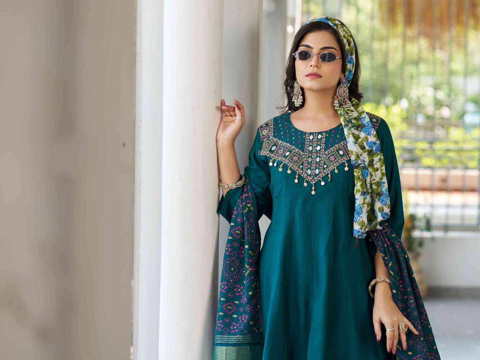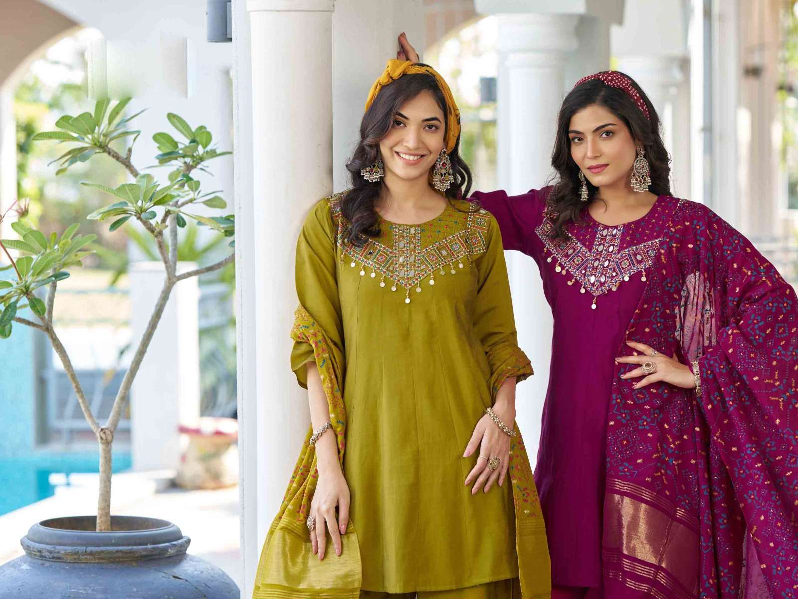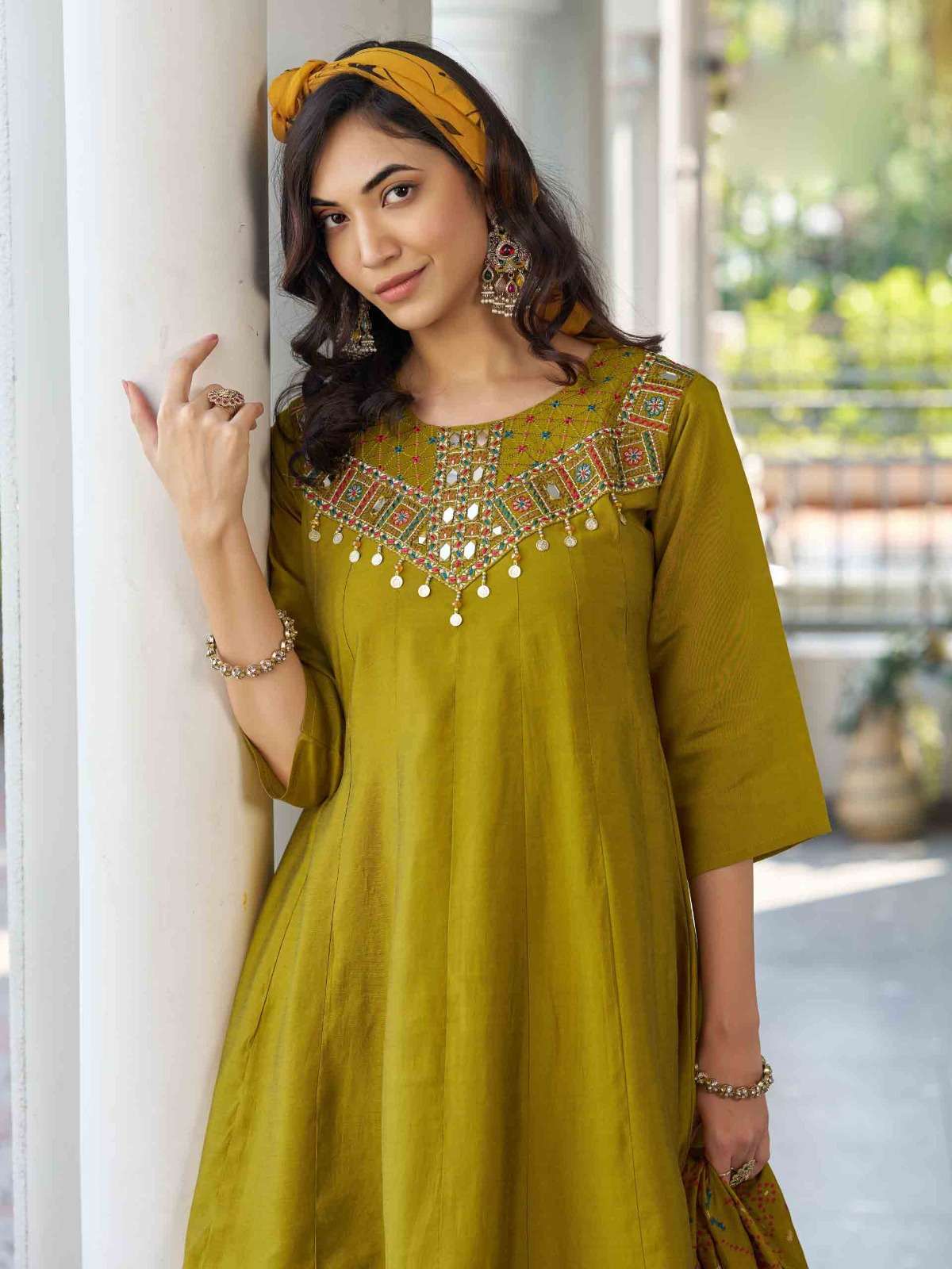 Product Name - Niru gulkayra by krisha premium simar silk with embroidery top with palazzo & dupatta set