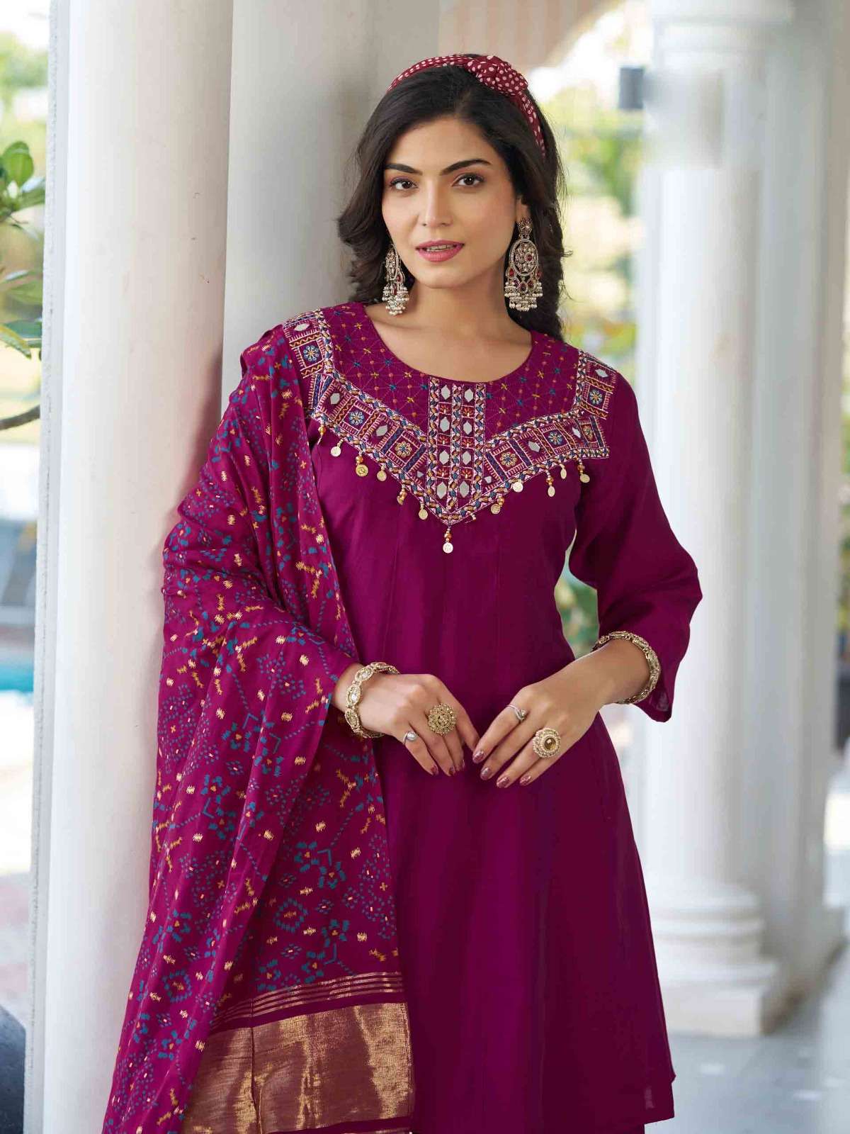 Product Name - sakhi gulkayra real simar silk with heavy embroidery work on Top with palazzo and dupatta