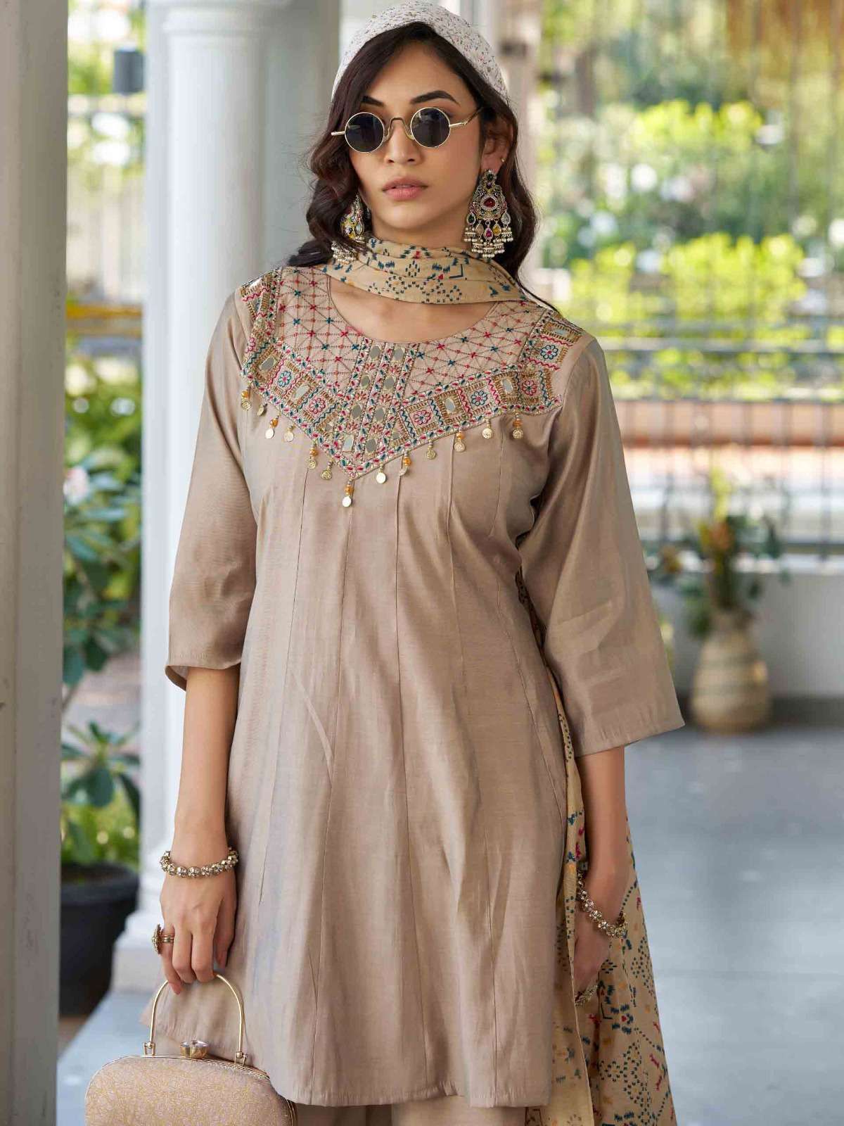 Product Name - beads collection by sayuri premium chinon silk trendy pakistani style beads work on top with pant dupatta