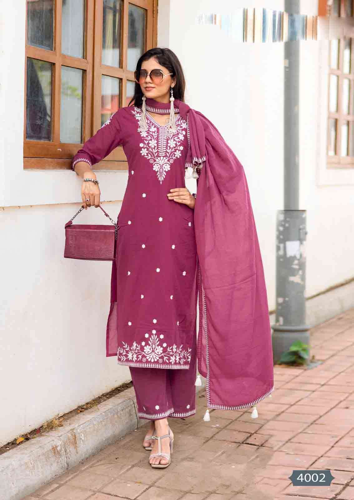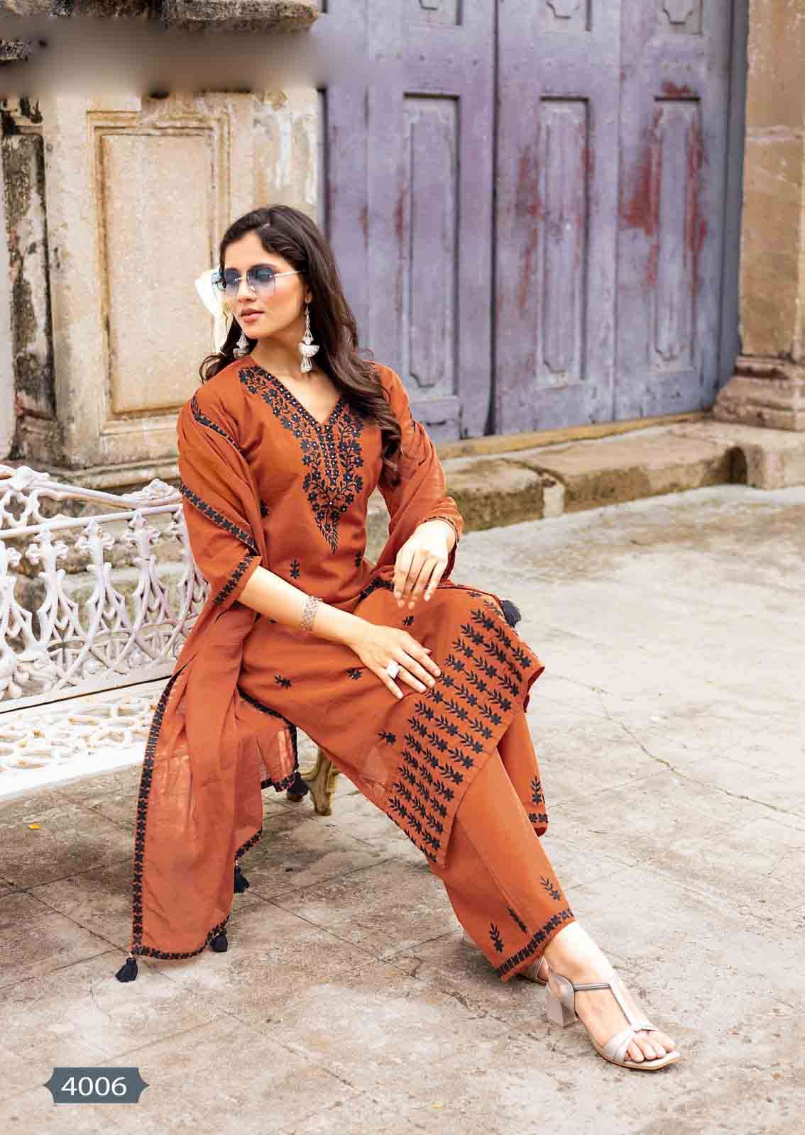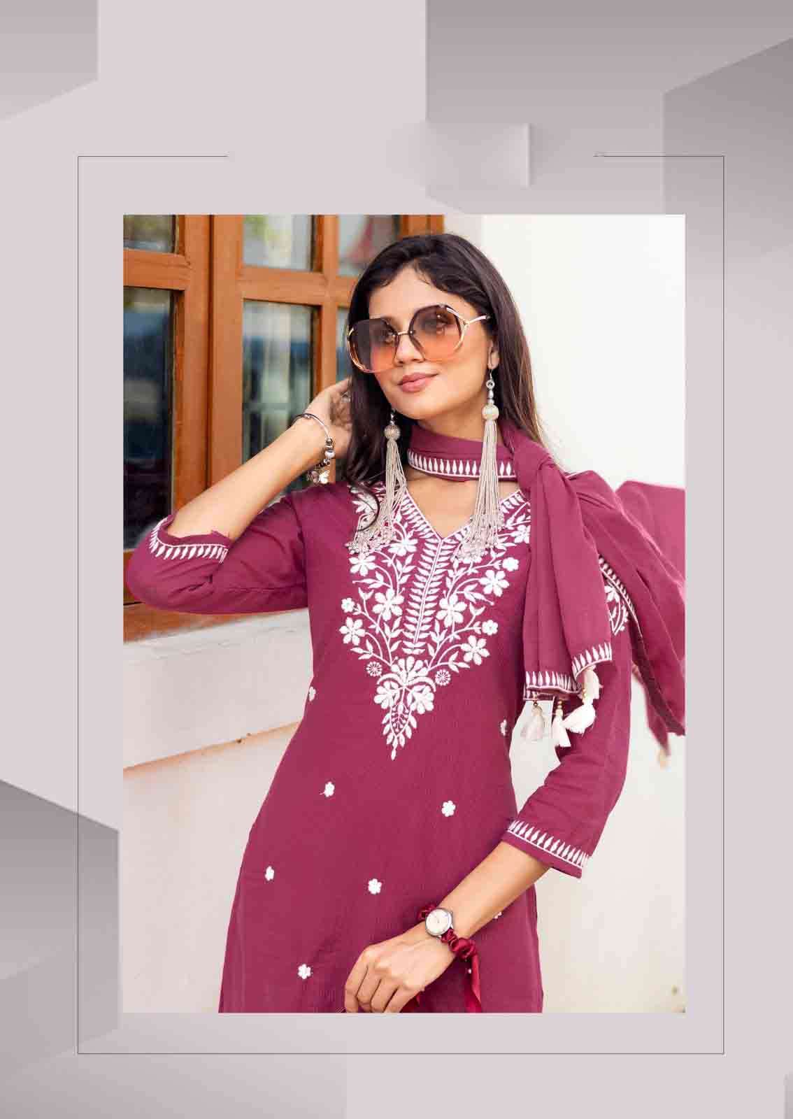 Product Name - safarnama vol 8 kailee by krisha creation cotton schiffli handwork fancy kurti pant with dupatta set