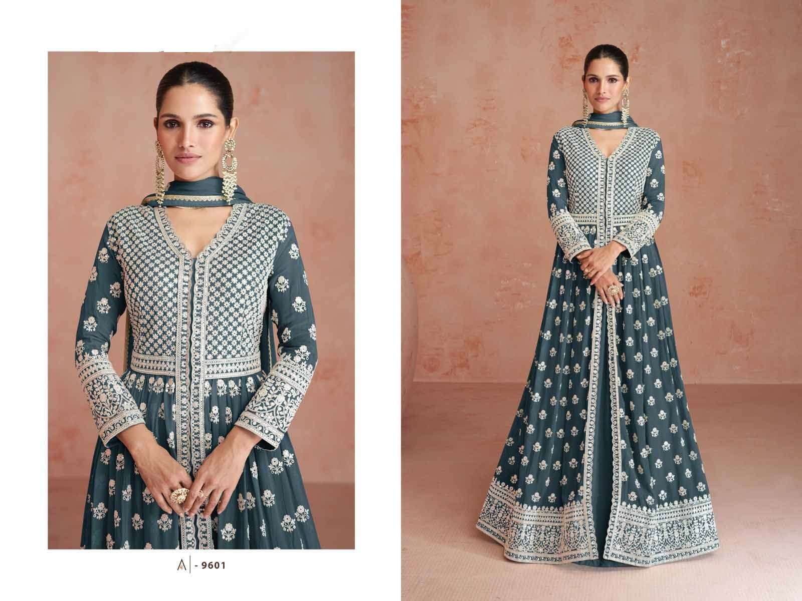 Product Name - sakhi gulkayra real simar silk with heavy embroidery work on Top with palazzo and dupatta