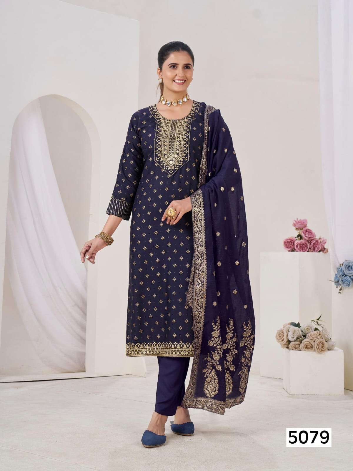 Product Name - satarangi vol 1 passion tree by krisha creation straight cut embroidery kurti pant dupatta set