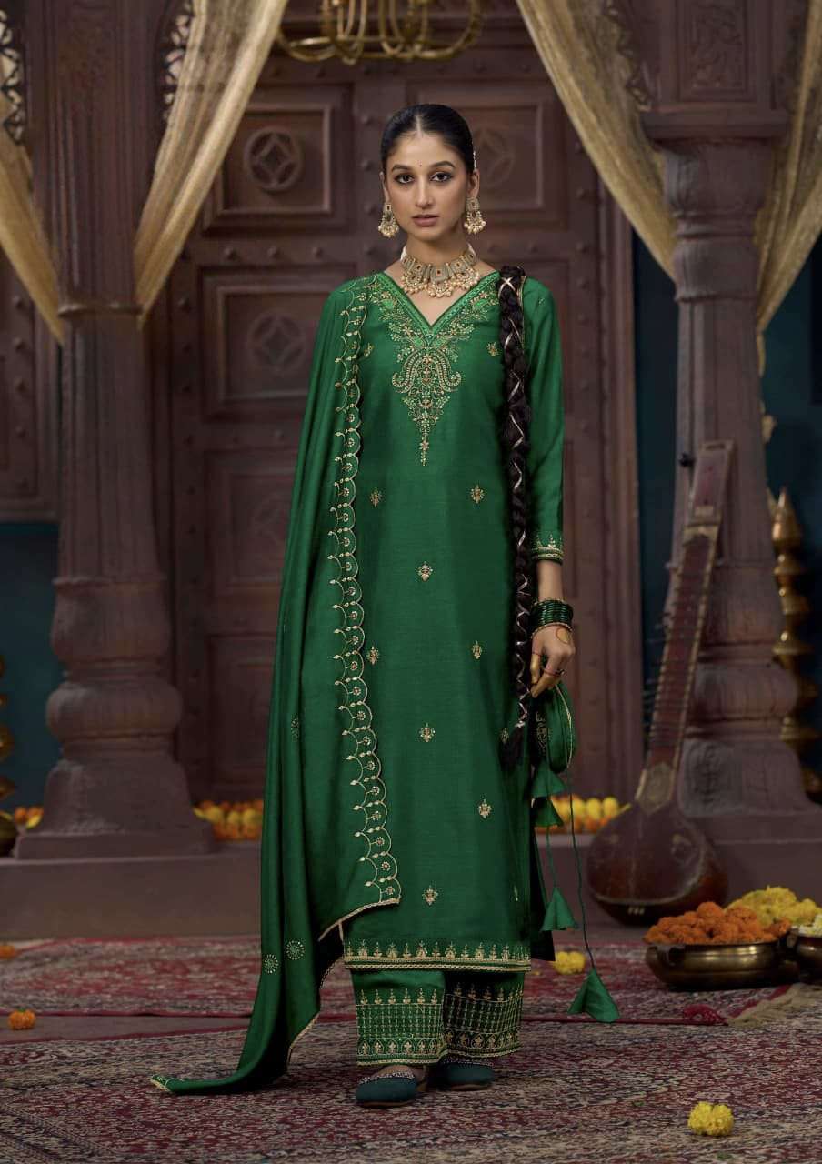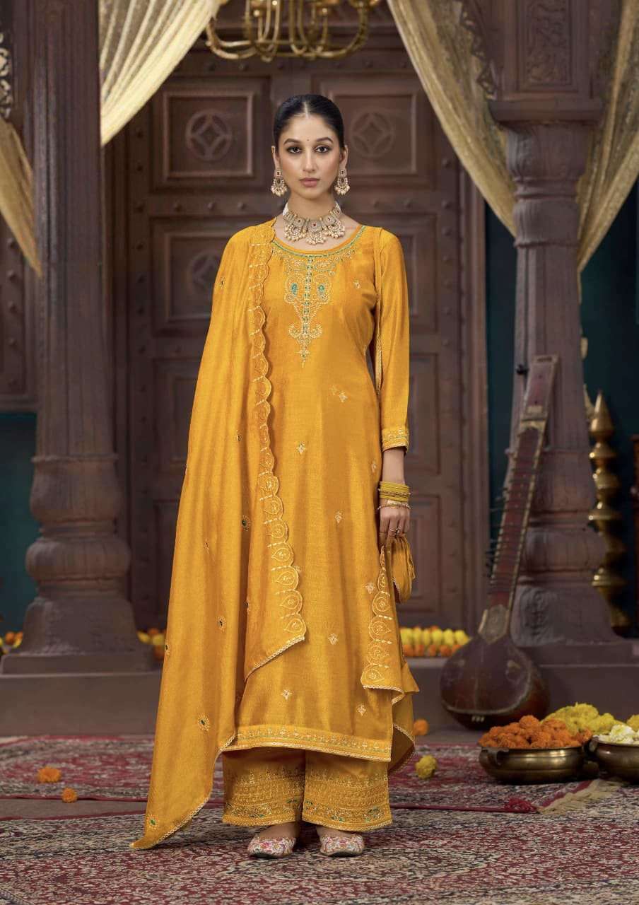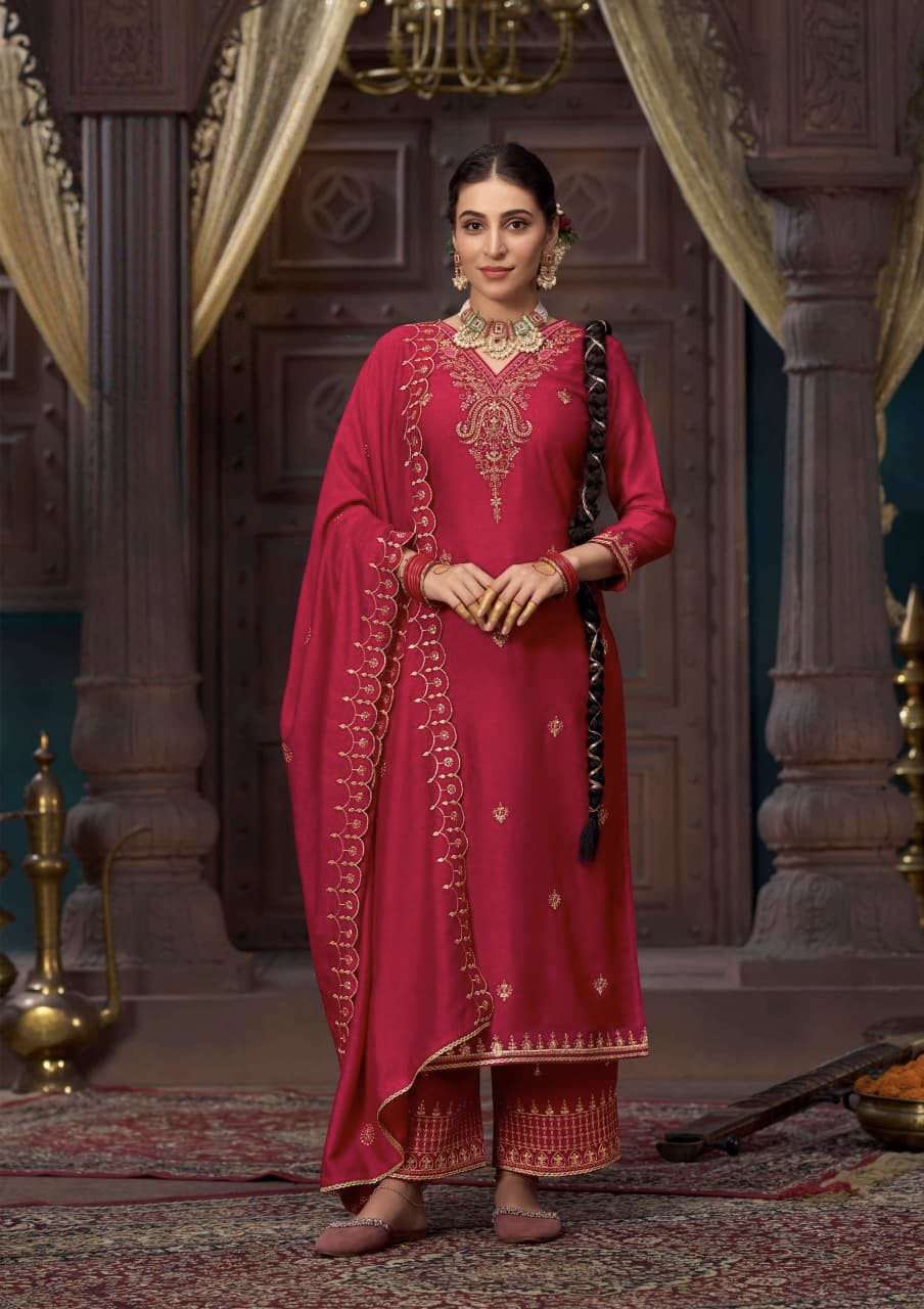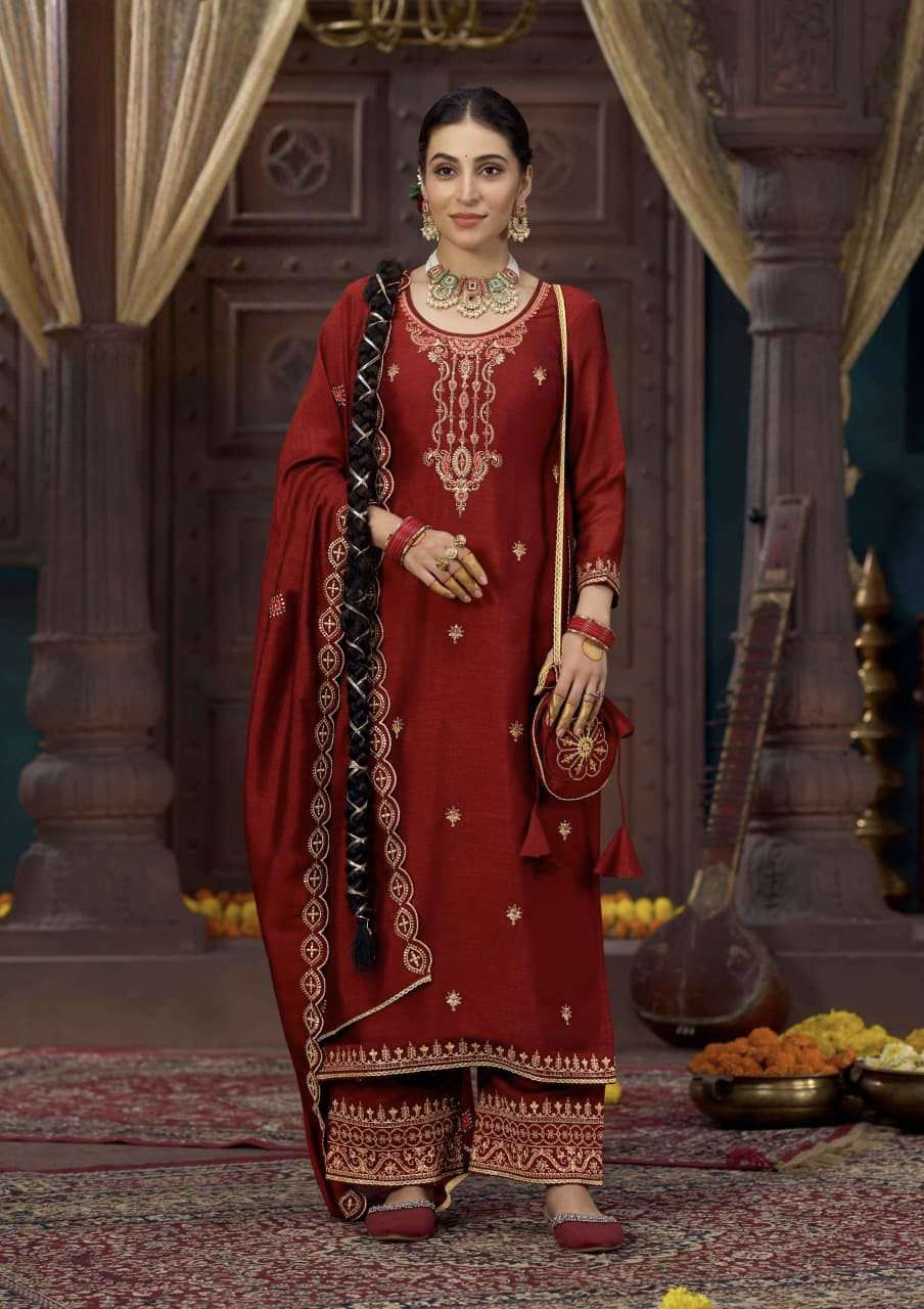 Product Name - sakhi gulkayra real simar silk with heavy embroidery work on Top with palazzo and dupatta