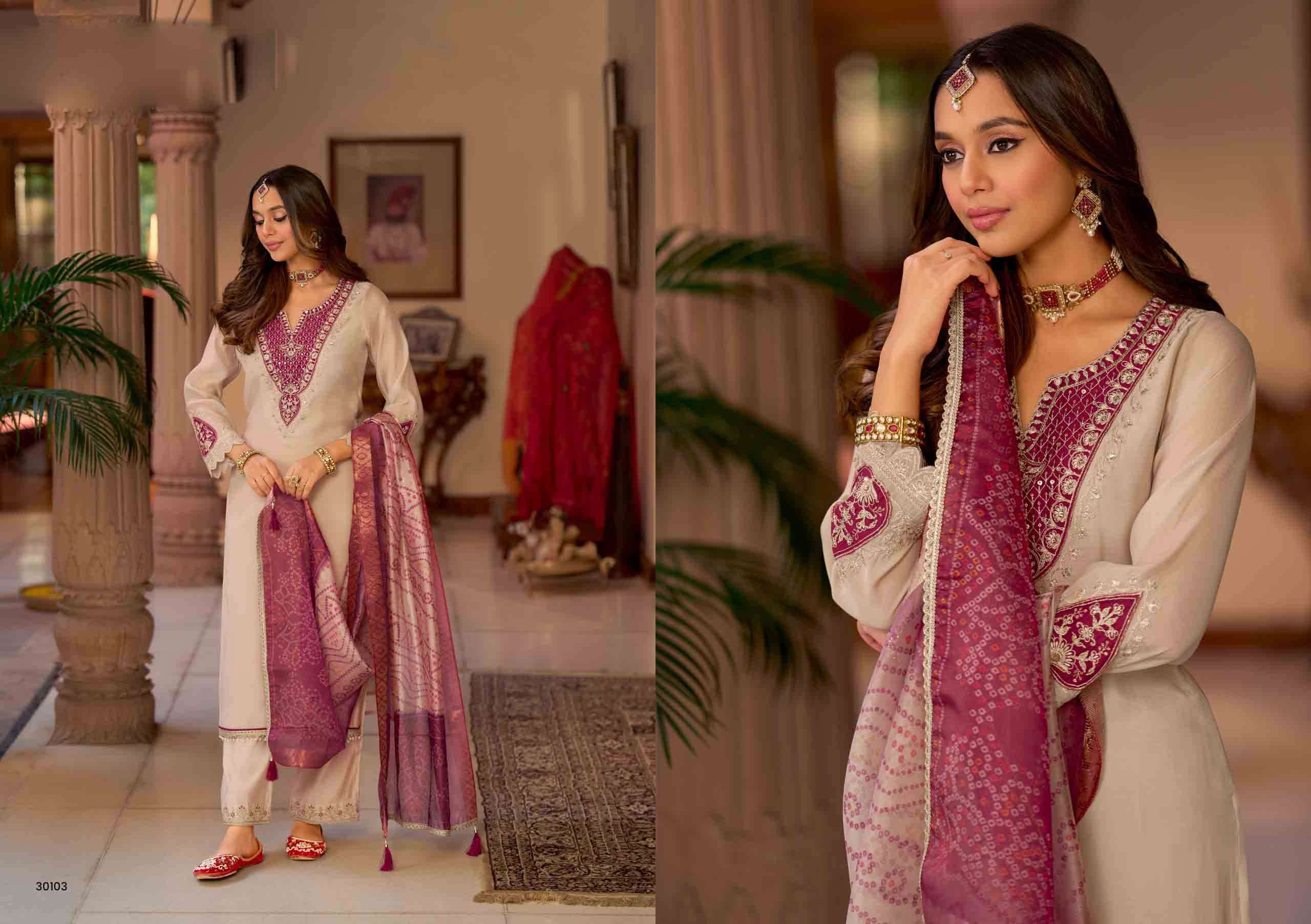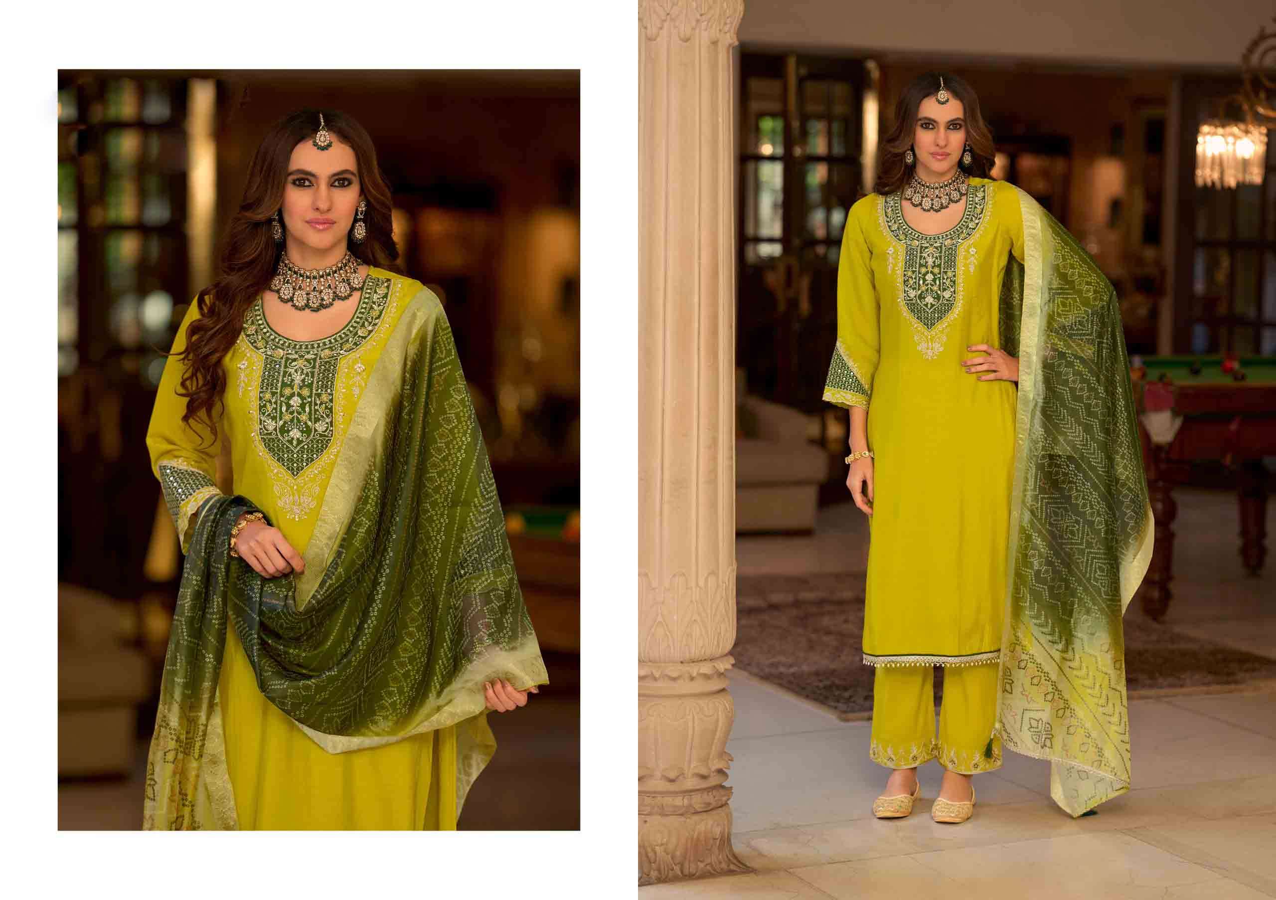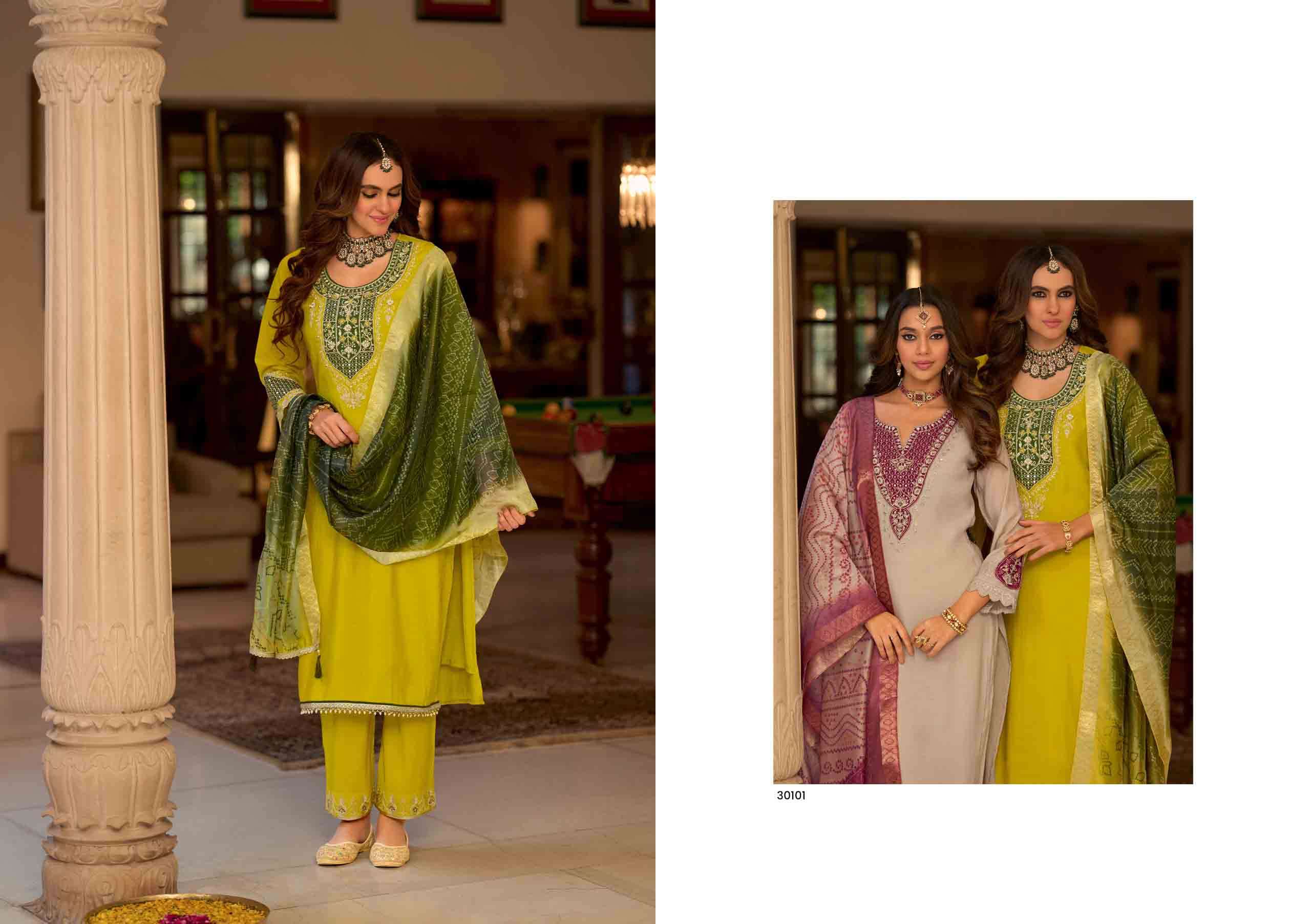 Product Name - kalini vol 1 radhika by krisha pure silk beads work kurti pant dupatta set