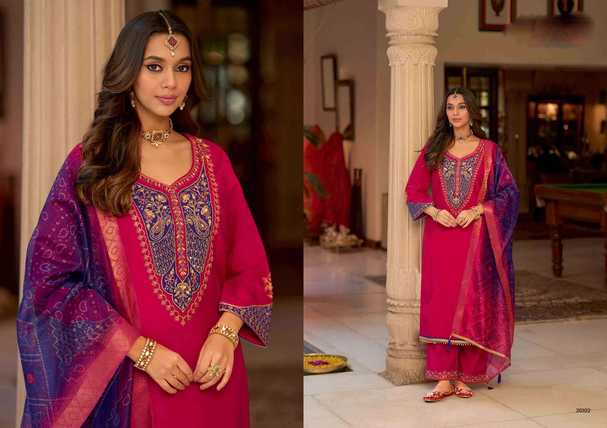 Product Name - anokhi rangoon by krisha creation viscose with embroidery & khatli handwork top with pant dupatta