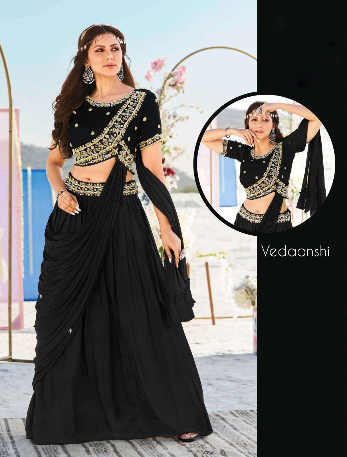 | TOP : | pure viscose georgette (work:- moti zardosi & sequins handwork) |