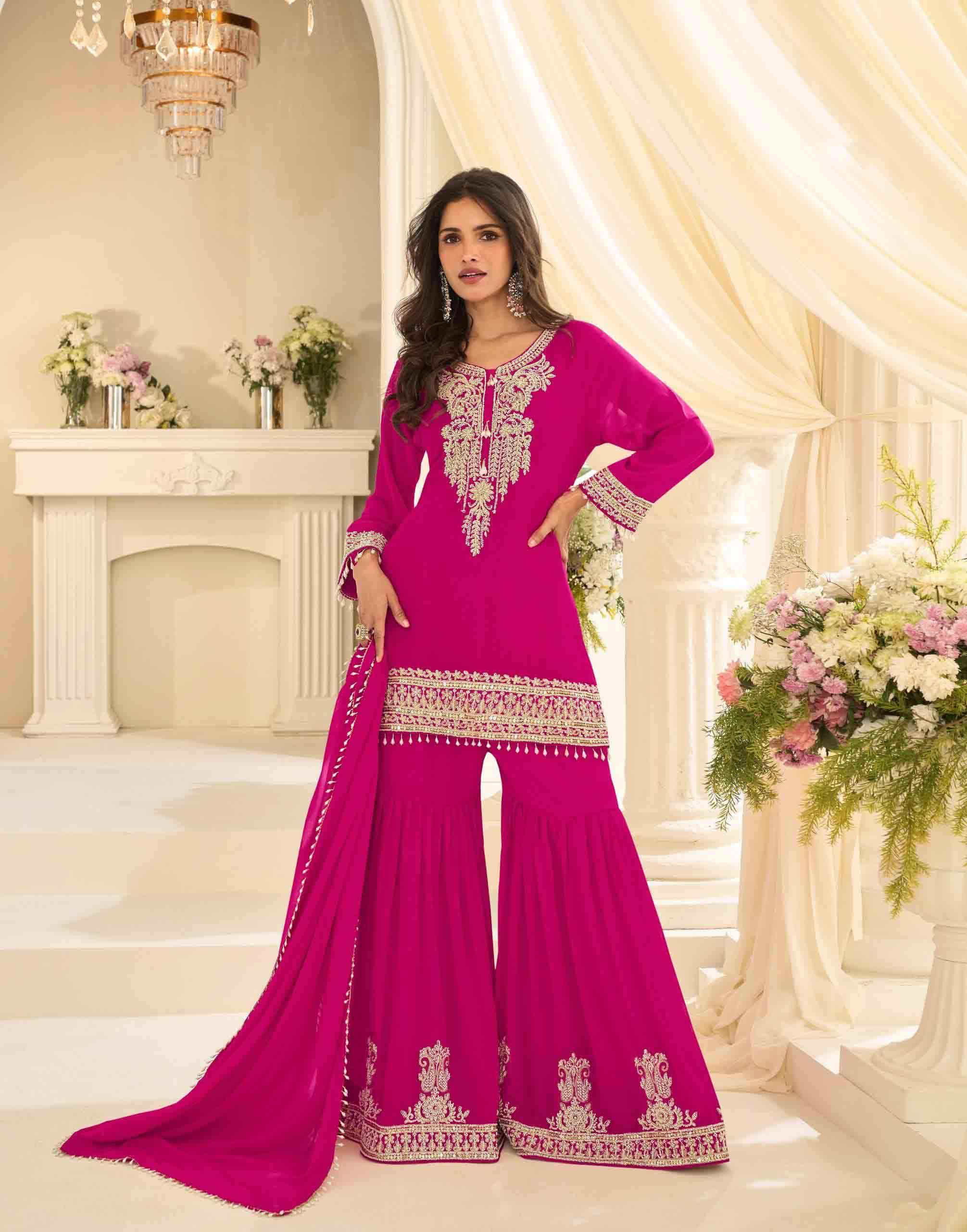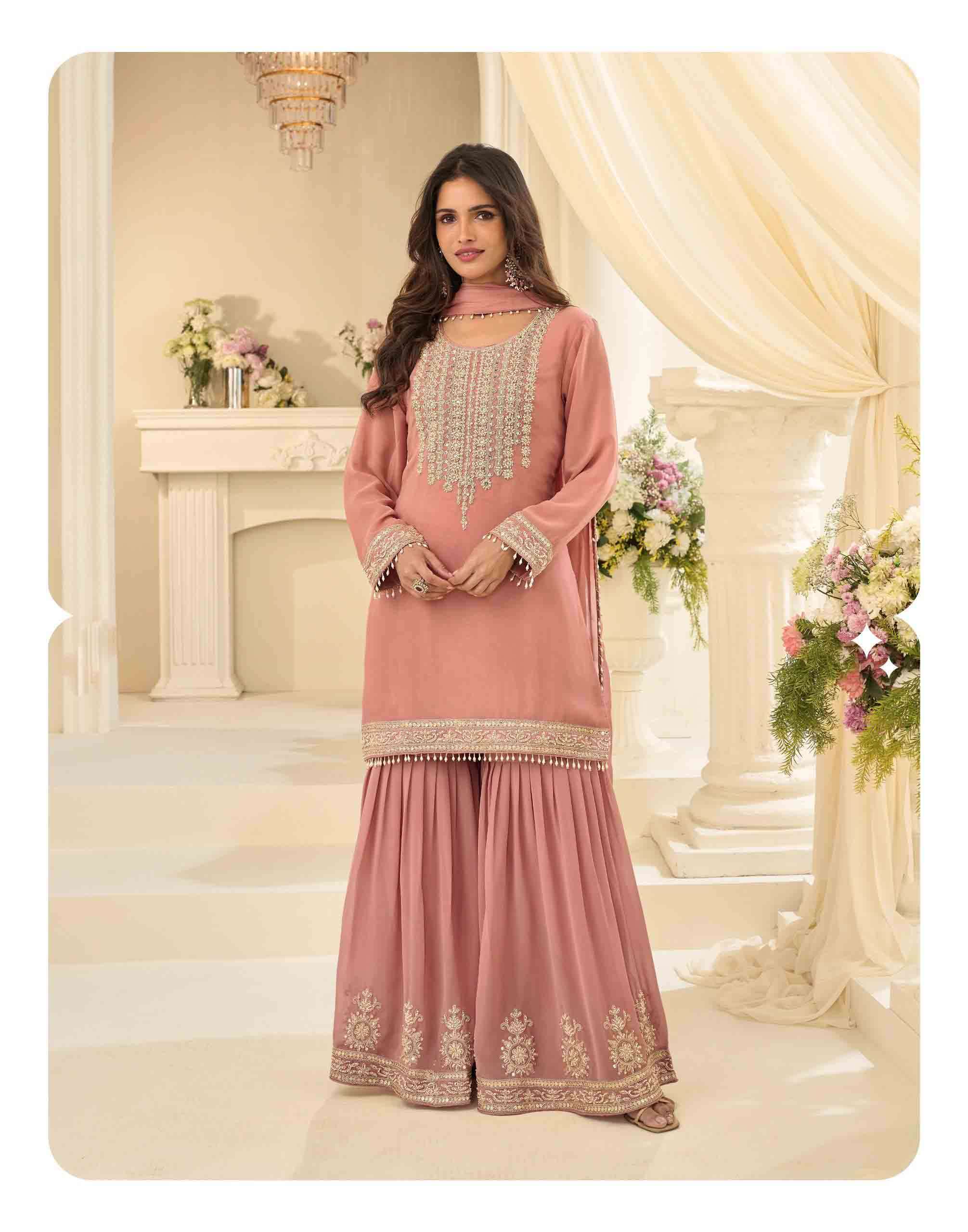 Product Name - miiror collection 10311 by sayuri designer premium chinon silk top with sharara and dupatta