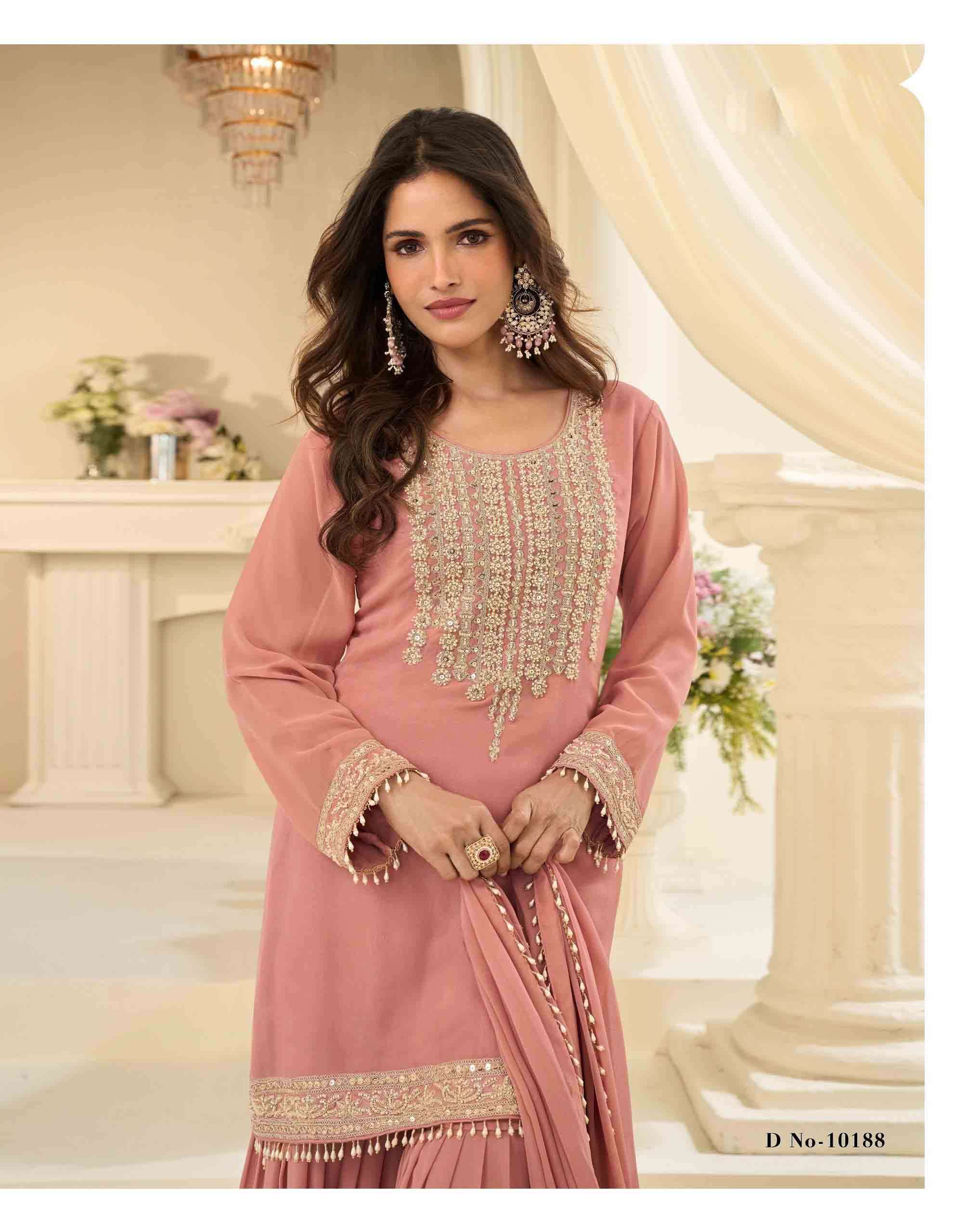 Product Name - beads collection by sayuri premium chinon silk trendy pakistani style beads work on top with pant dupatta