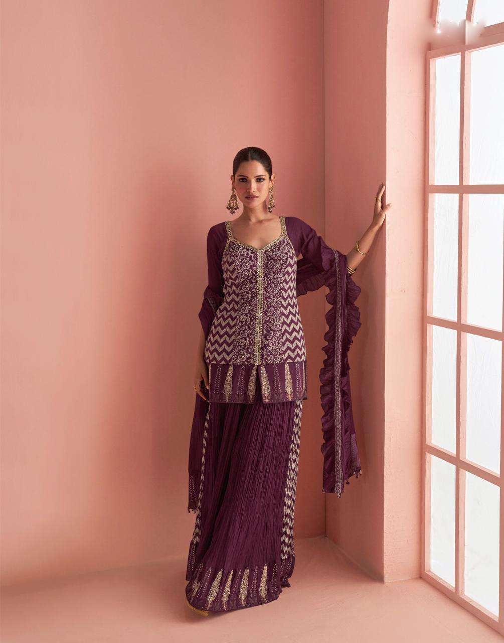 Product Name - miiror collection 10311 by sayuri designer premium chinon silk top with sharara and dupatta