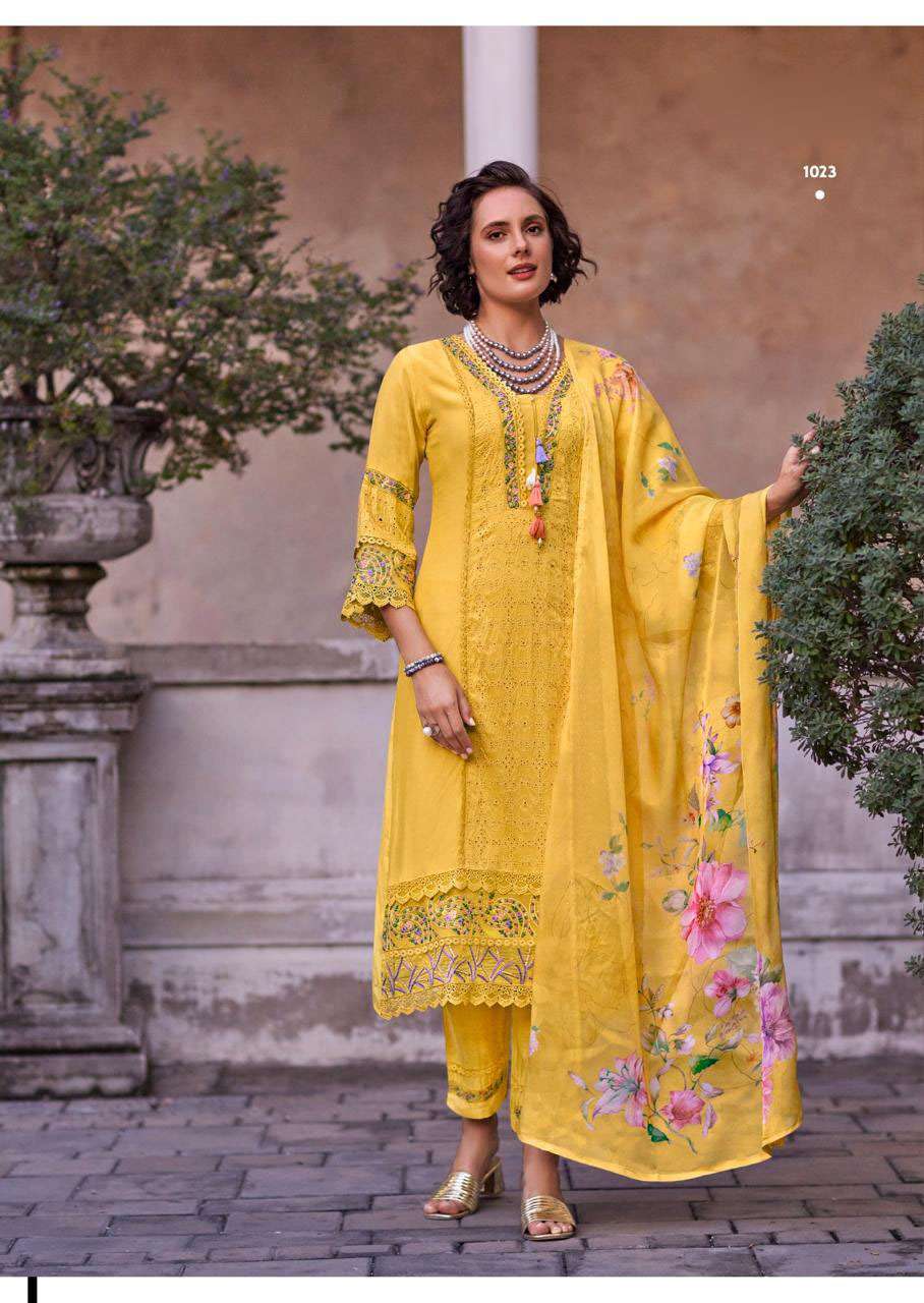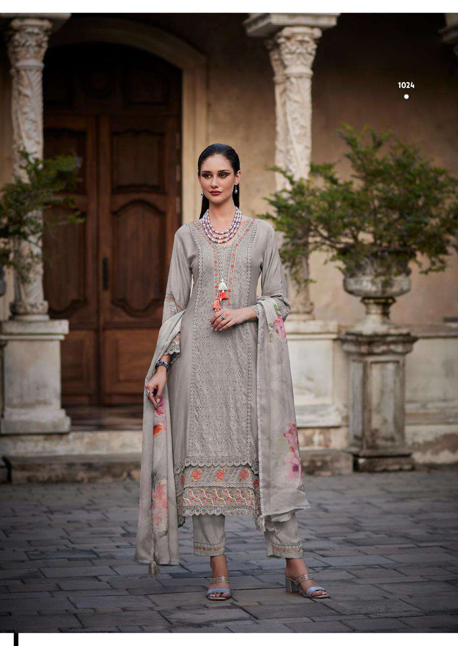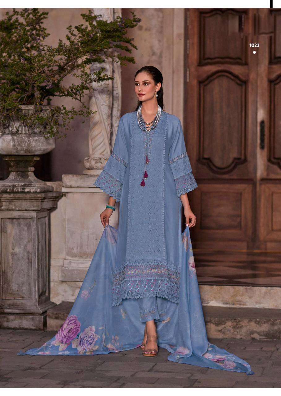 Product Name - safarnama vol 8 kailee by krisha creation cotton schiffli handwork fancy kurti pant with dupatta set