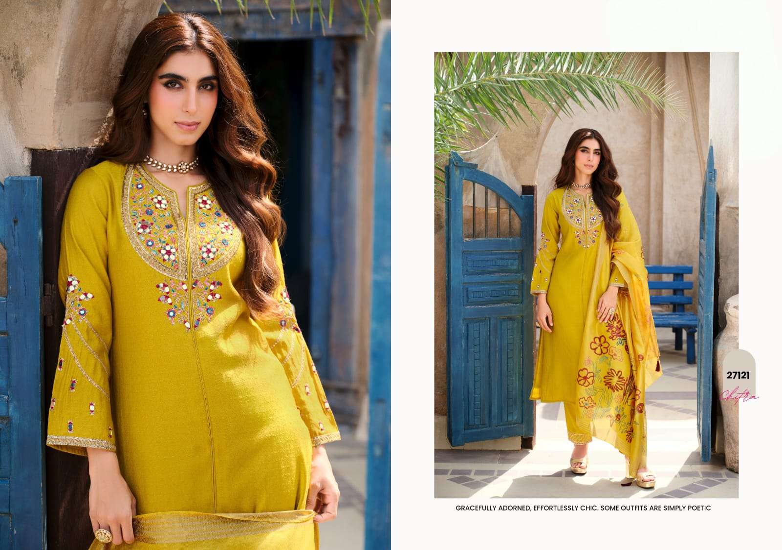 Product Name - Rangoon ketki vol 2 chinon with fancy code & mirror work on top with palazzo and dupatta