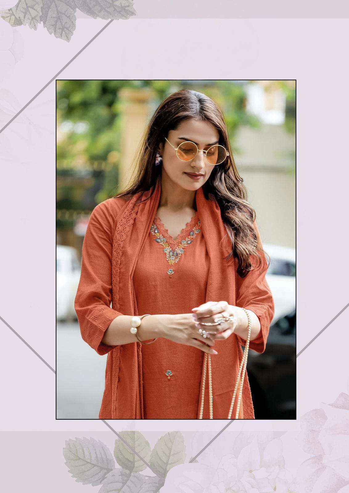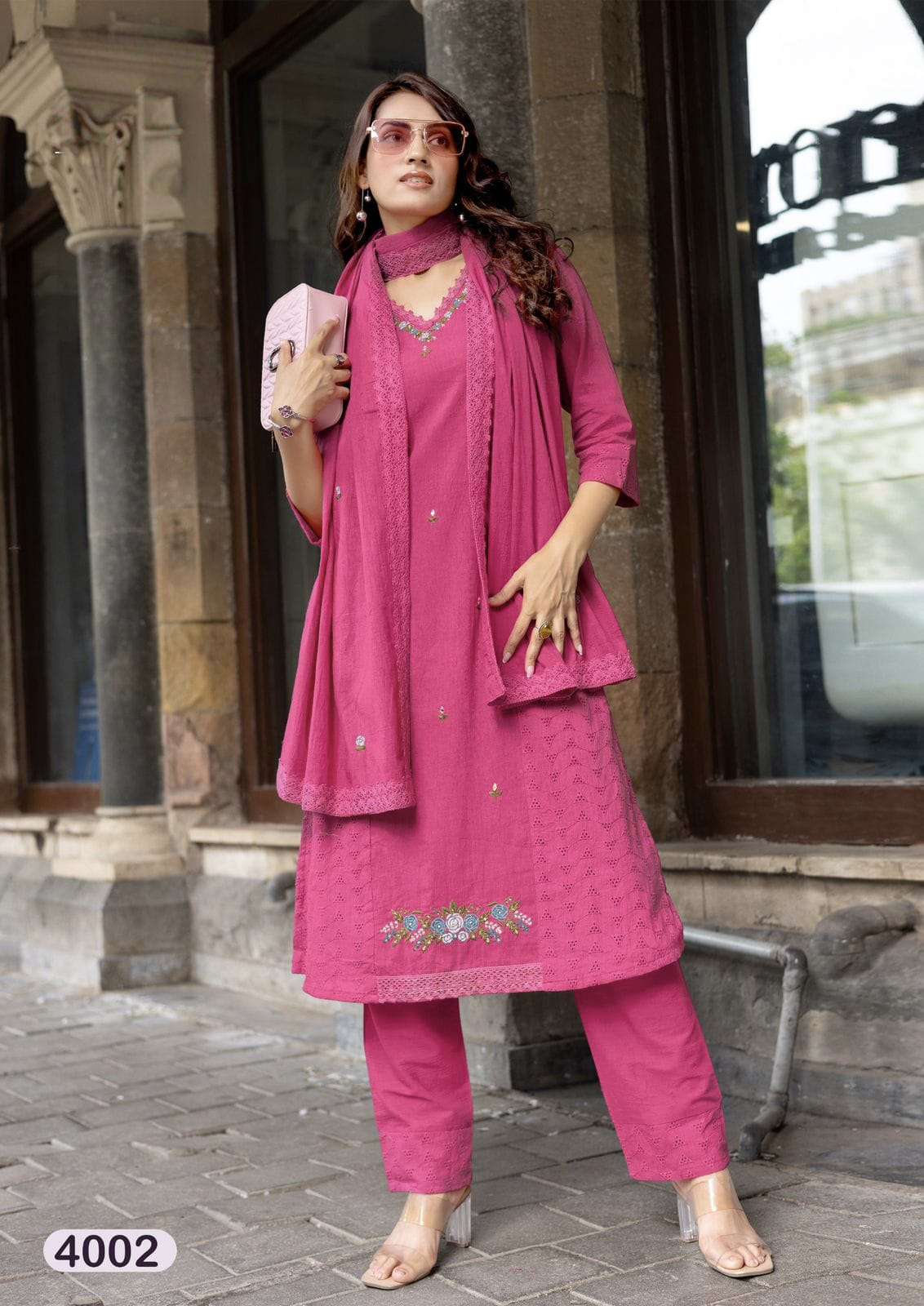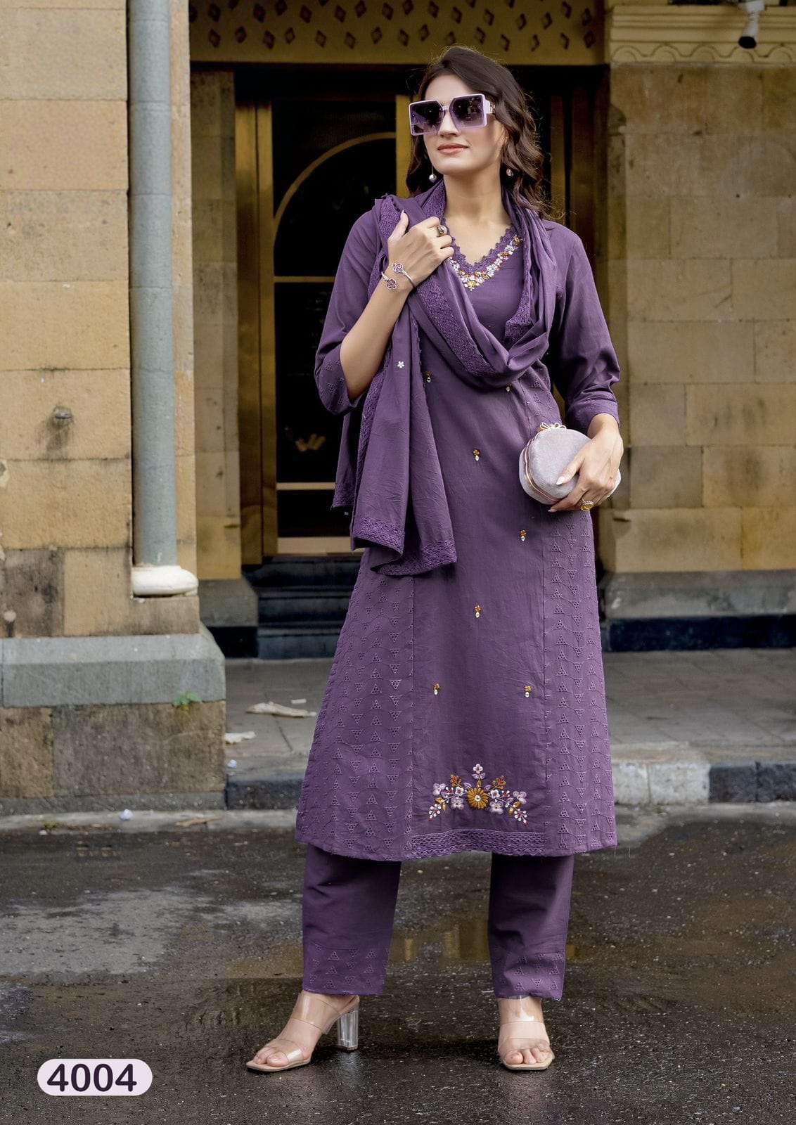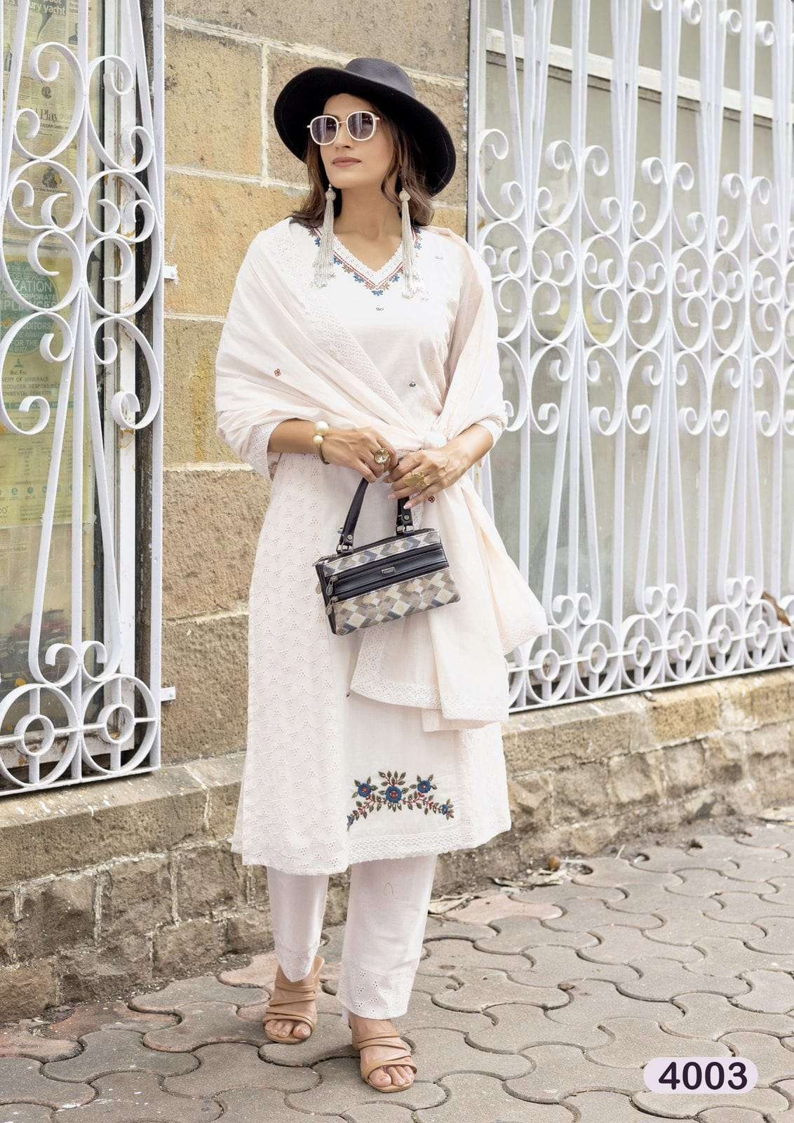 Product Name - safarnama vol 8 kailee by krisha creation cotton schiffli handwork fancy kurti pant with dupatta set