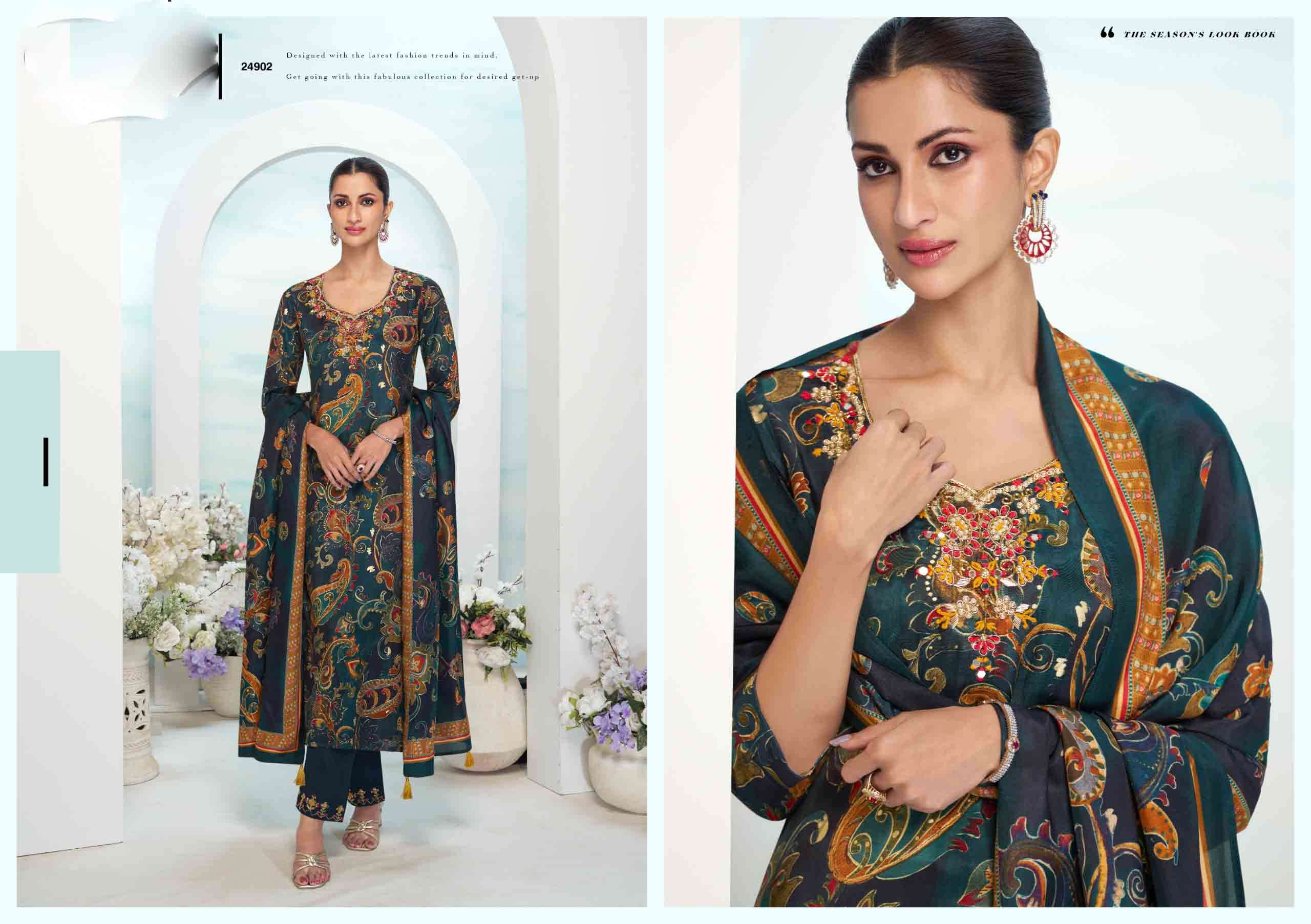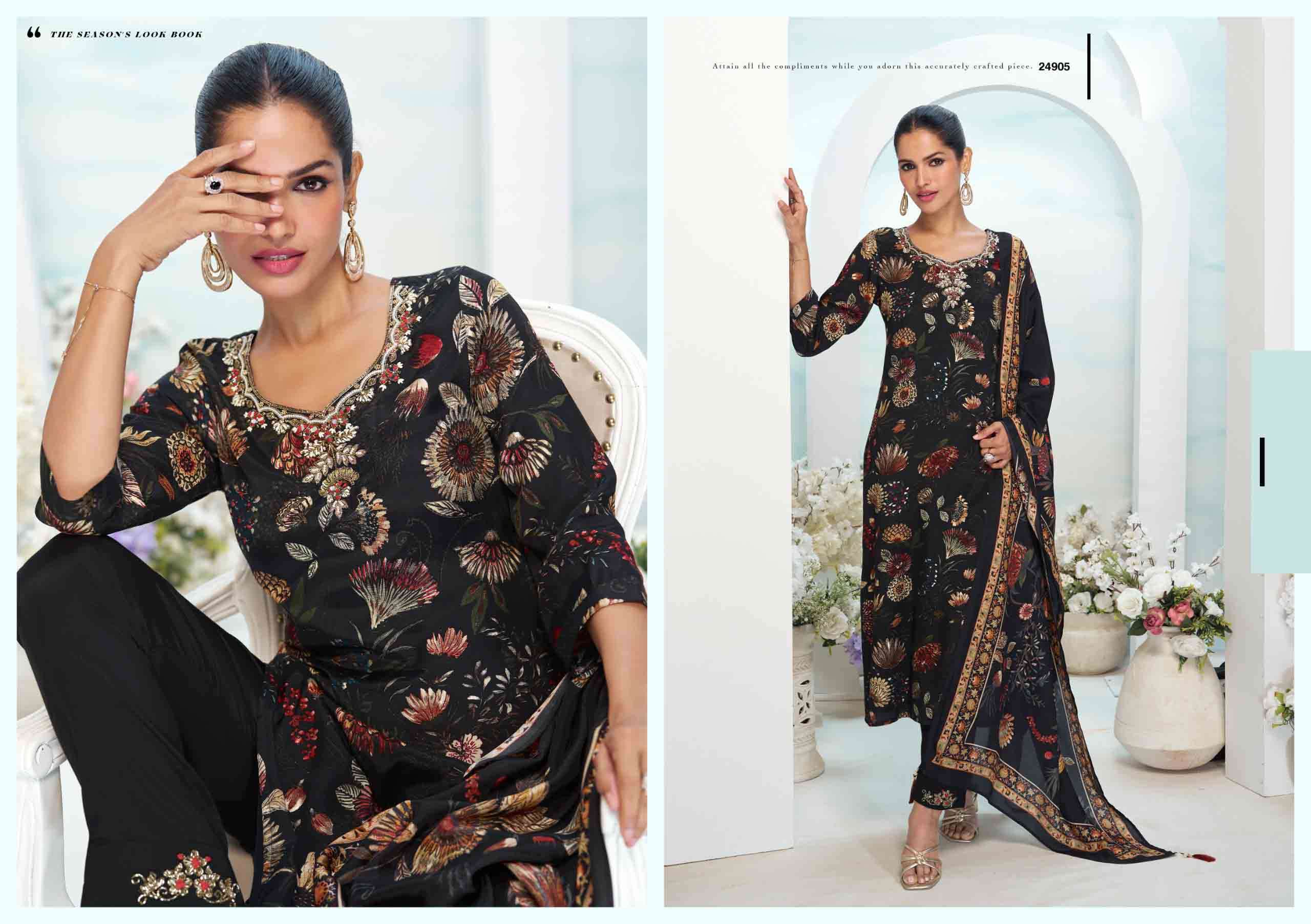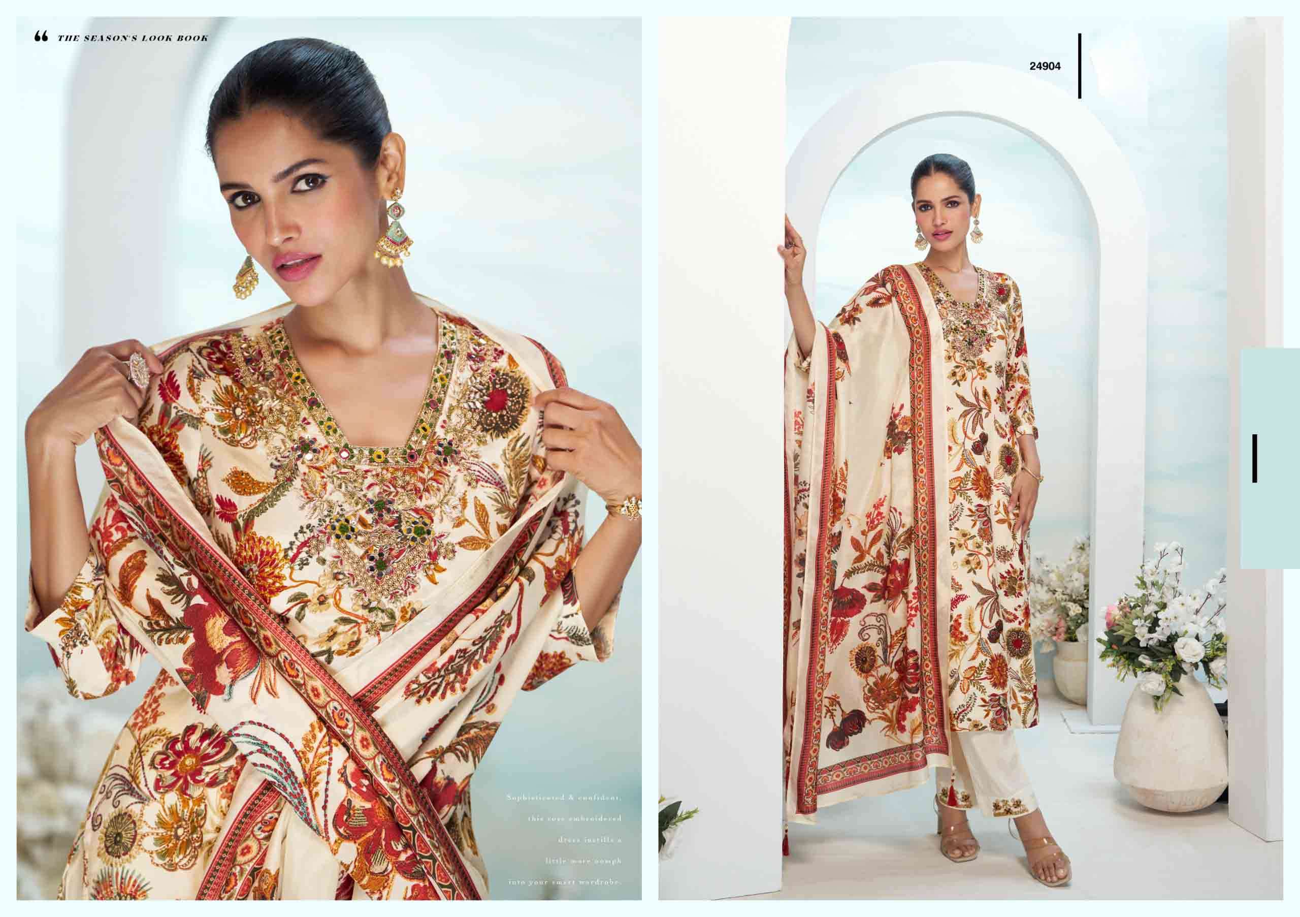 Product Name - safarnama vol 8 kailee by krisha creation cotton schiffli handwork fancy kurti pant with dupatta set