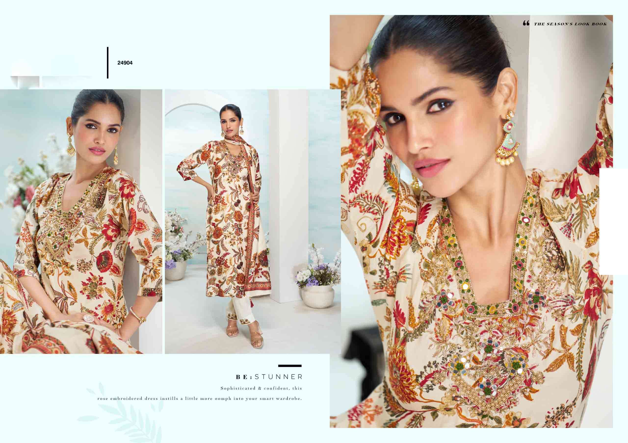 Product Name - satarangi vol 1 passion tree by krisha creation straight cut embroidery kurti pant dupatta set