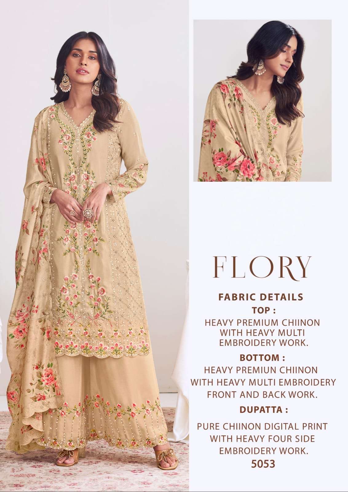 | TOP : | premium chinon with heavy embroidary & thread work with mirror touch |