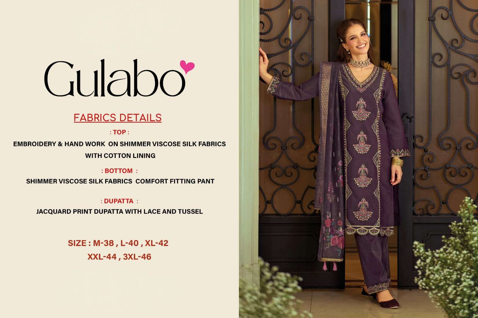 | TOP : | embroidery & hand work on shimmer viscose silk fabrics with cotton lining |