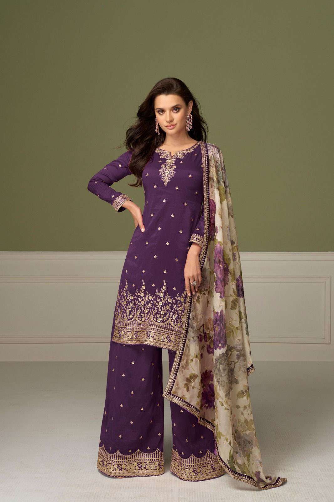 Product Name - sakhi gulkayra real simar silk with heavy embroidery work on Top with palazzo and dupatta