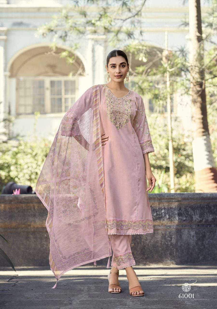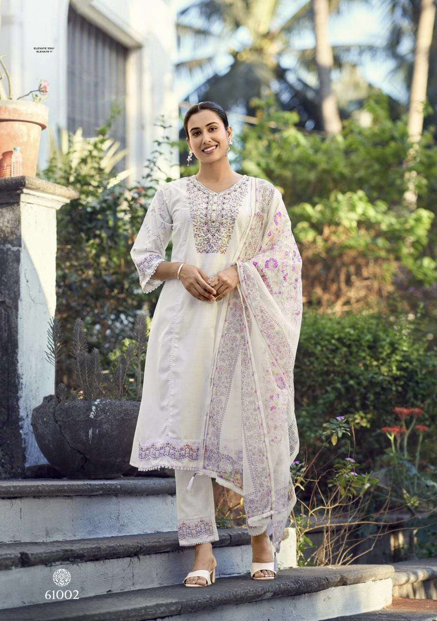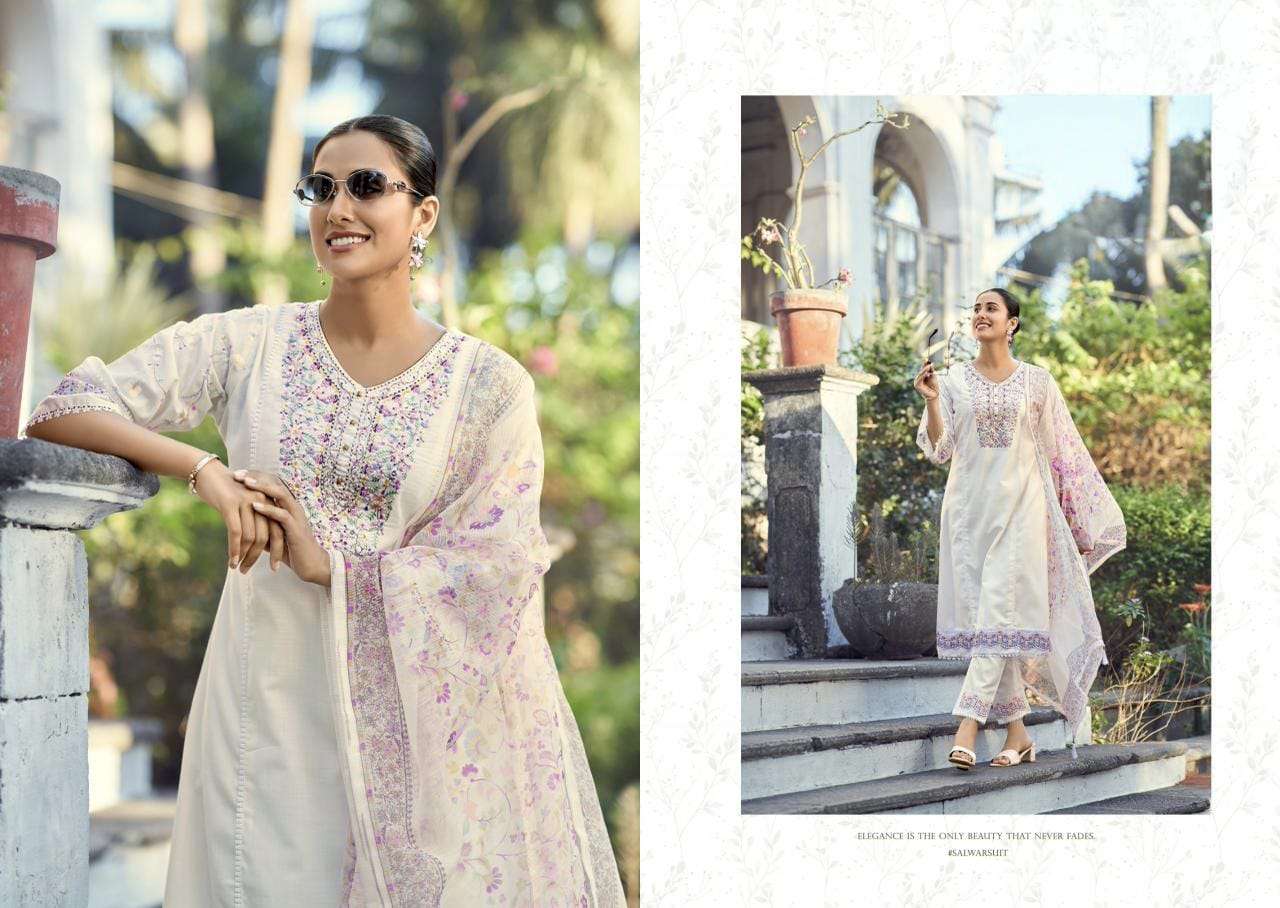 Product Name - safarnama vol 8 kailee by krisha creation cotton schiffli handwork fancy kurti pant with dupatta set