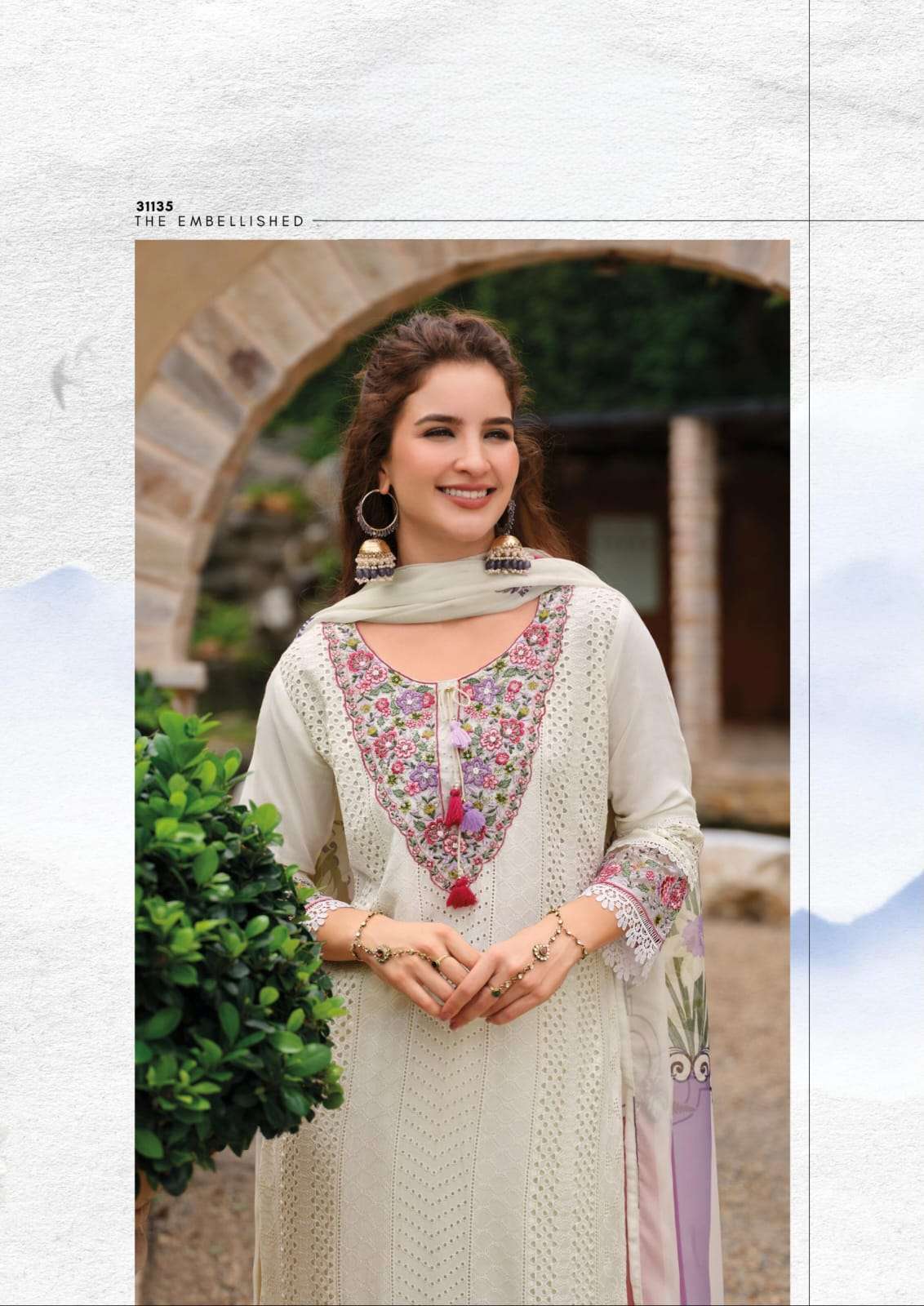 Product Name - safarnama vol 8 kailee by krisha creation cotton schiffli handwork fancy kurti pant with dupatta set