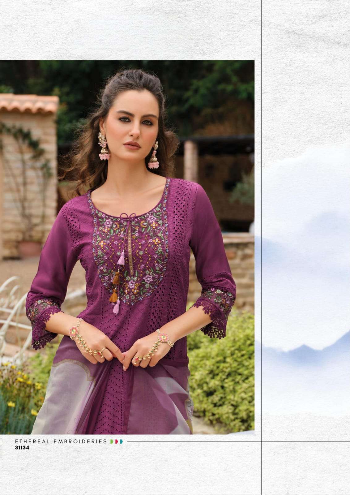 TOP👗 - Embriodery & Handwork on Pure Maslin Schiffli fabric with Pure Cotton Inner