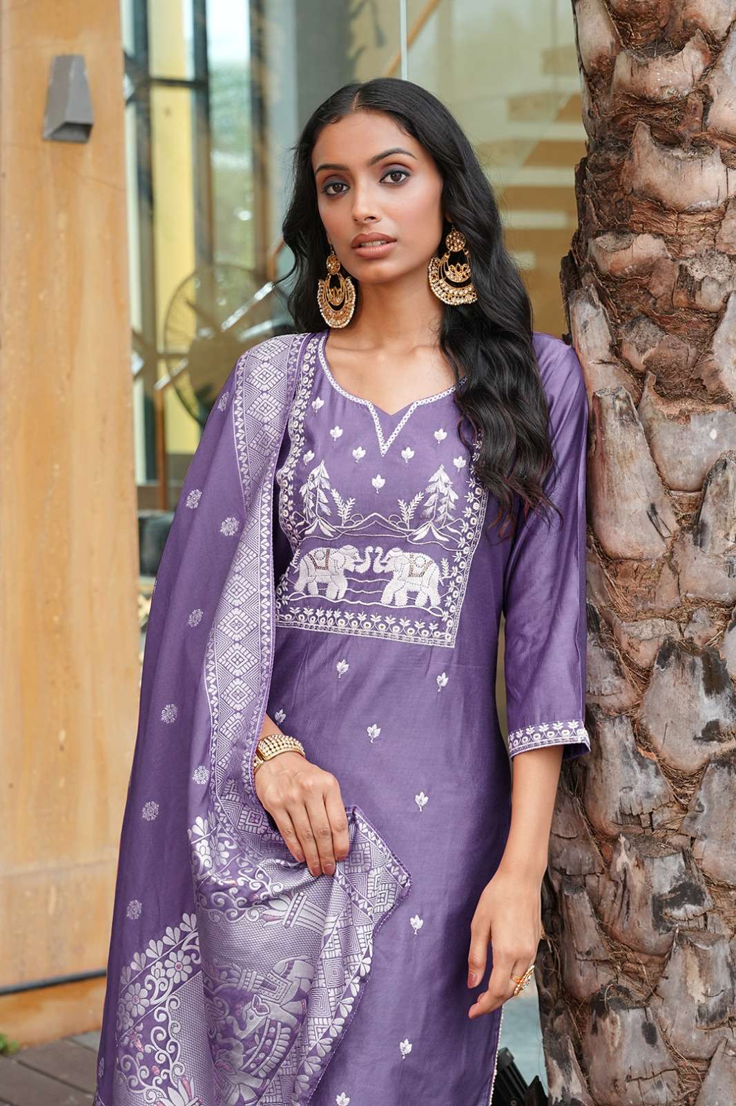 Product Name - sakhi gulkayra real simar silk with heavy embroidery work on Top with palazzo and dupatta