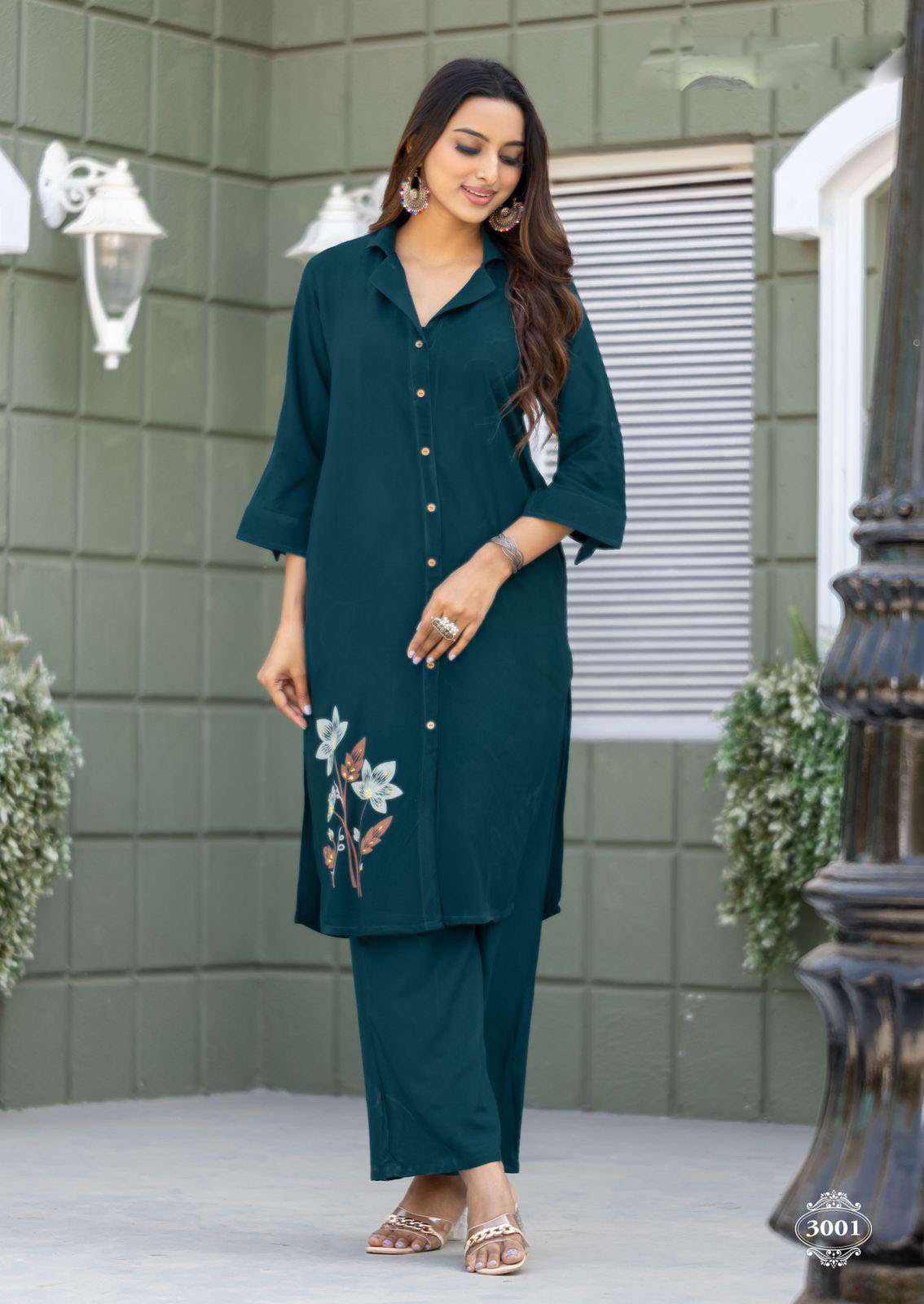 Product Name - Rani VATICAN FLORAL FULL EMBROIDERY ON V NECK EMBROIDERY WORK CORD SETS