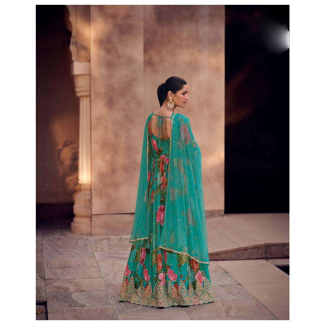 Product Name - sakhi gulkayra real simar silk with heavy embroidery work on Top with palazzo and dupatta
