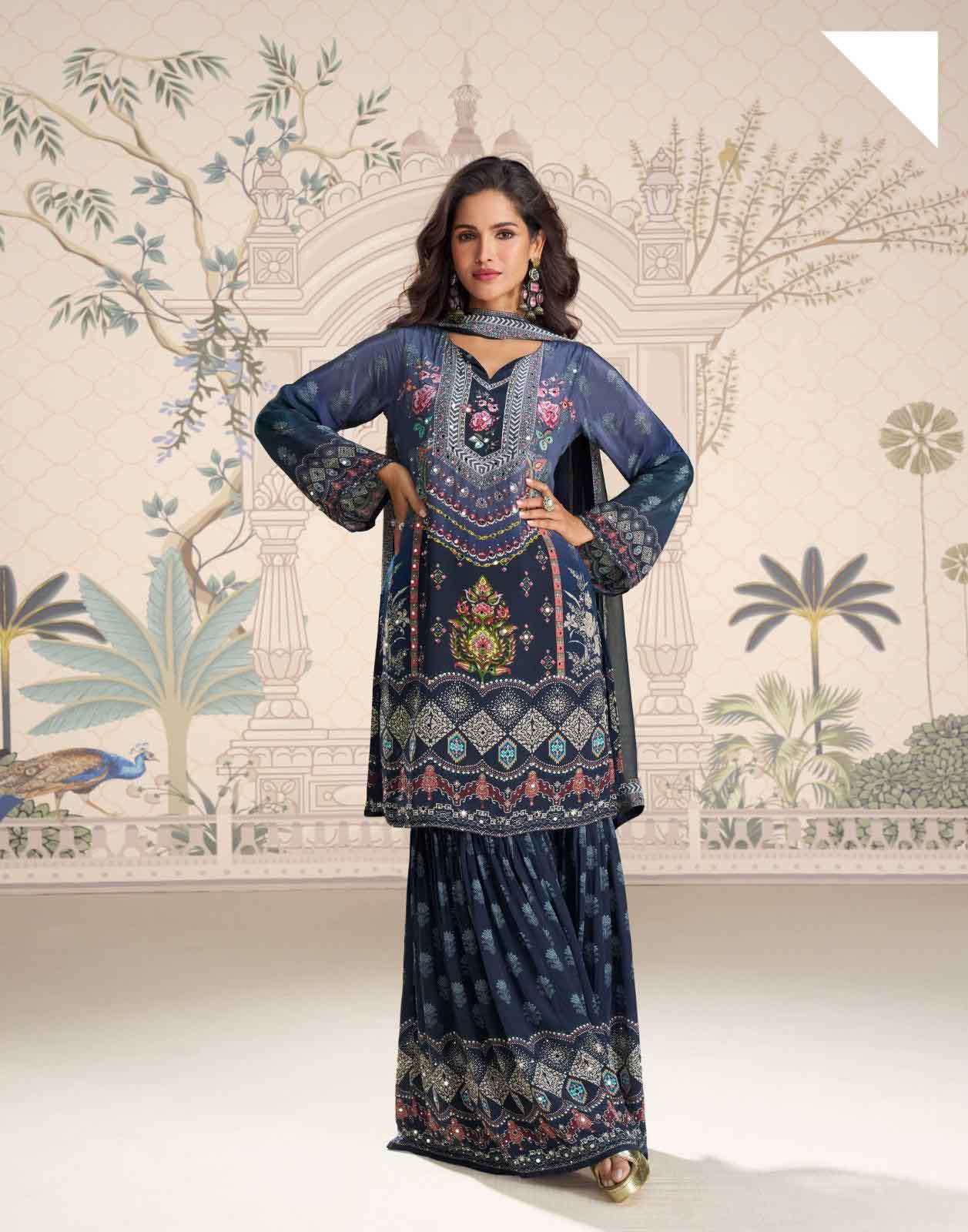 Product Name - miiror collection 10311 by sayuri designer premium chinon silk top with sharara and dupatta