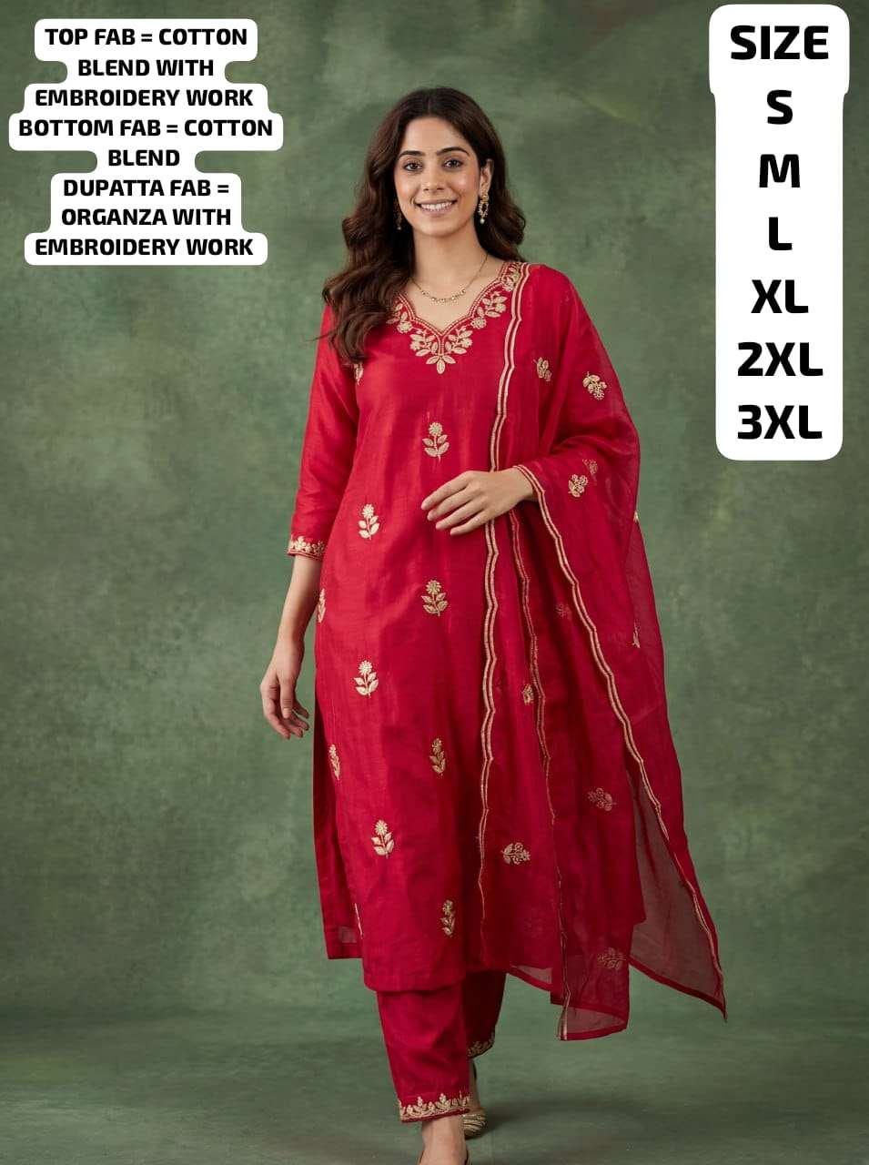 | TOP : | cotton blend with embrodeiry work |
