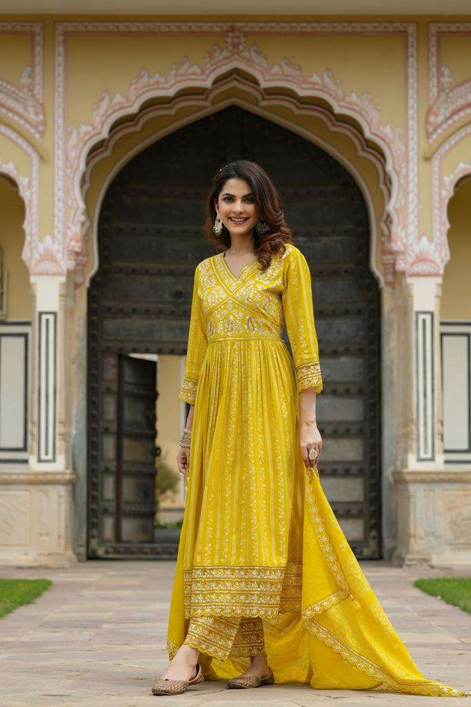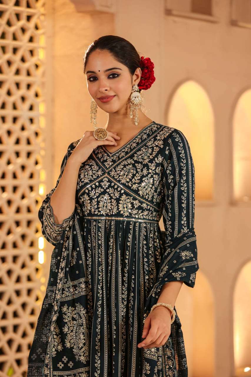 Fabric :- Rayon with All Over Embroidery work