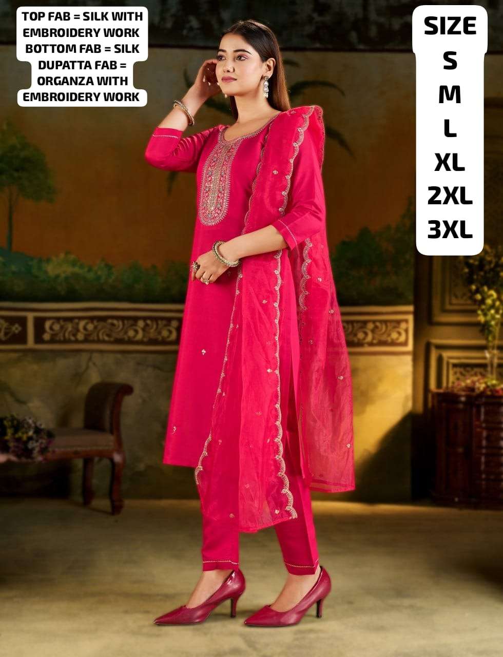 Product Name - sakhi gulkayra real simar silk with heavy embroidery work on Top with palazzo and dupatta