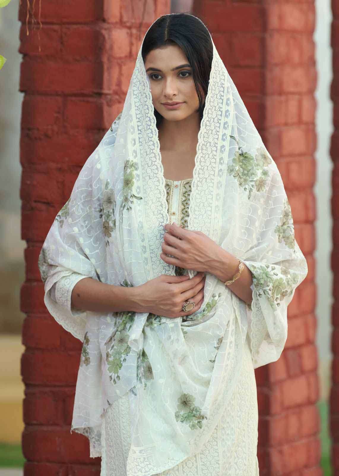 Product Name - safarnama vol 8 kailee by krisha creation cotton schiffli handwork fancy kurti pant with dupatta set
