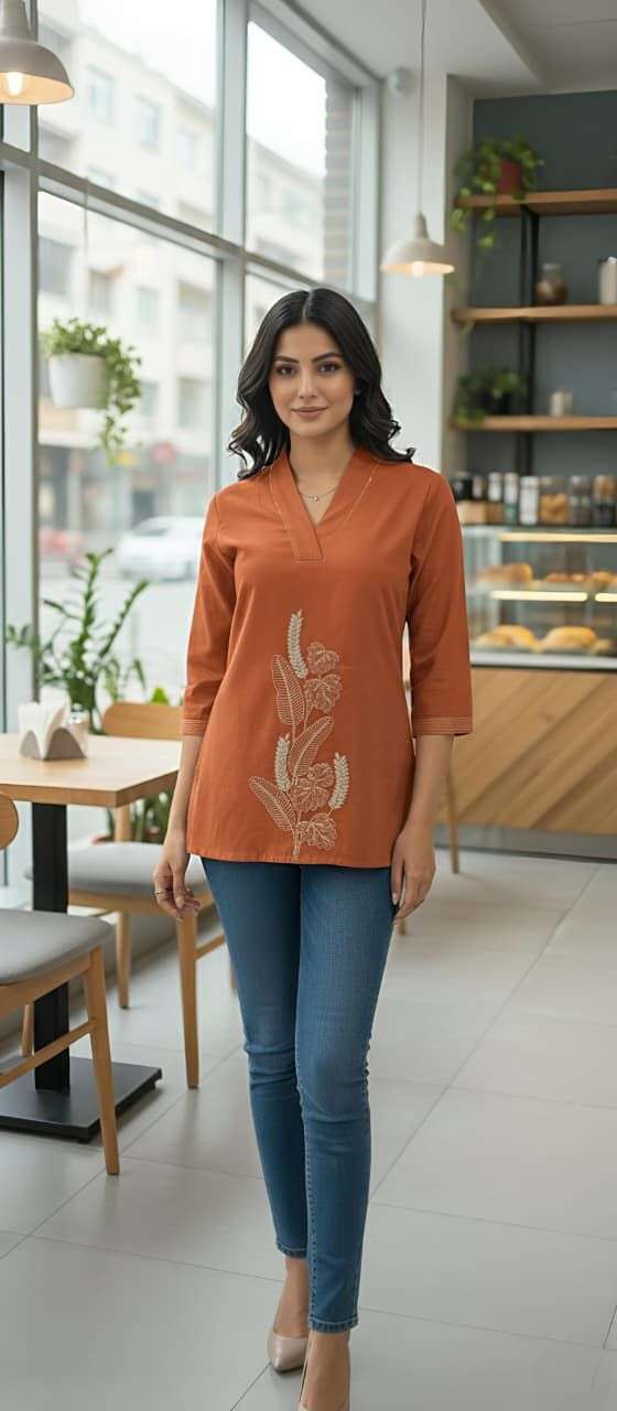 Product Name - Shital beautiful cotton 60 60 embroidery short tops by krisha creation