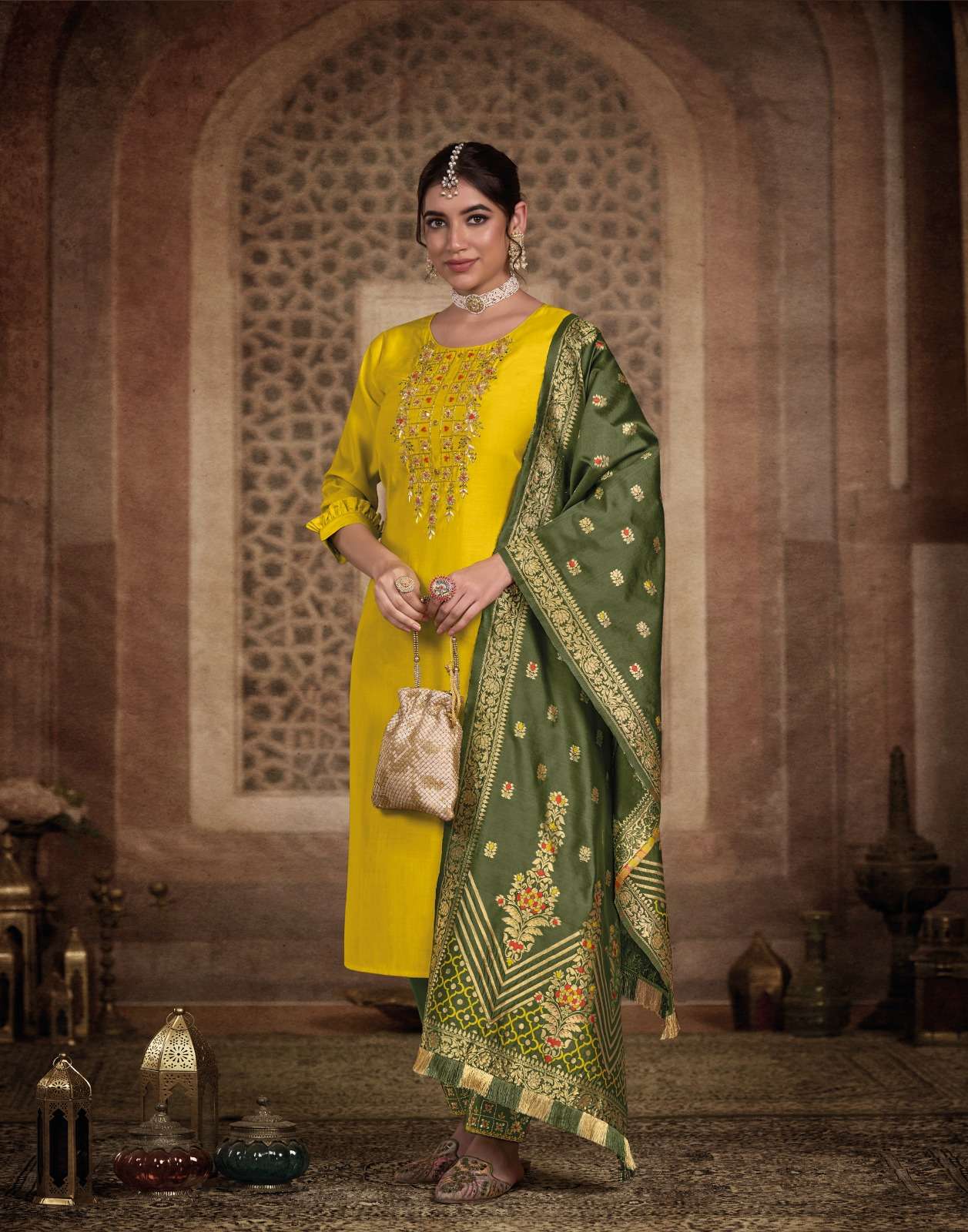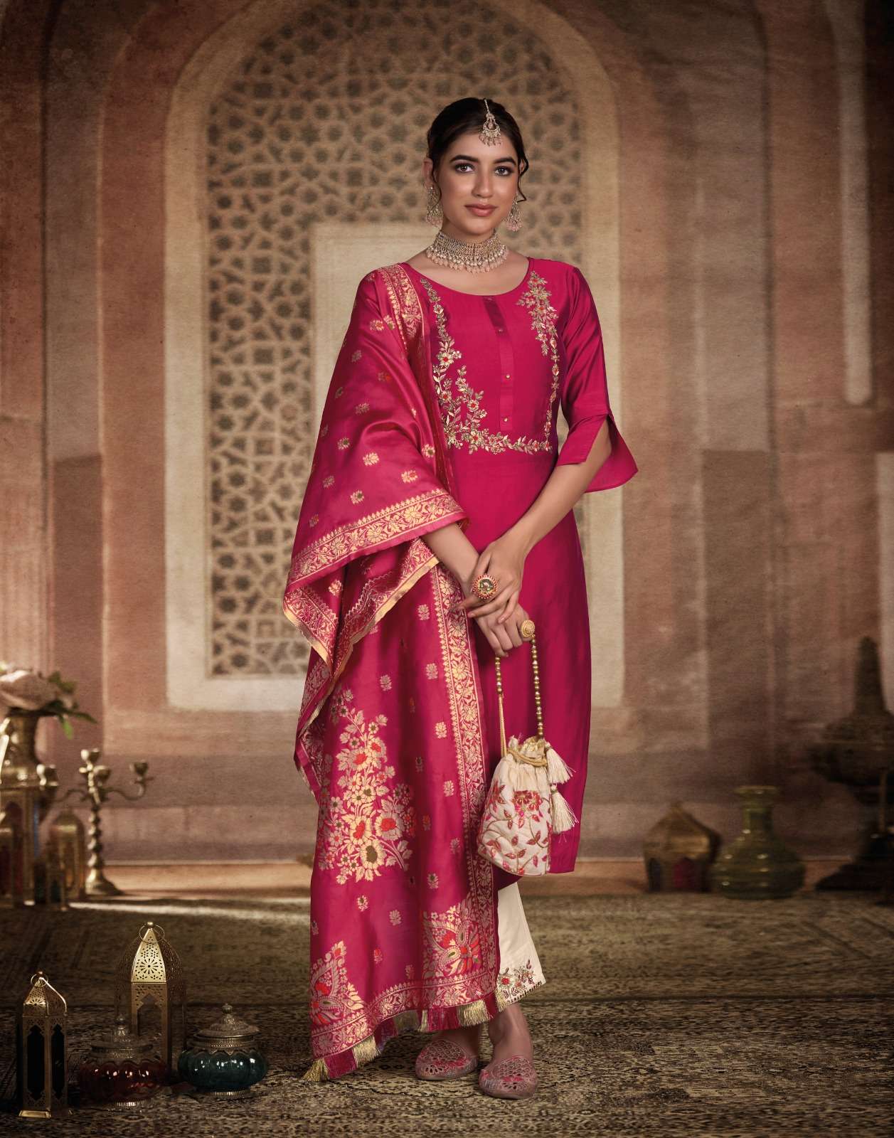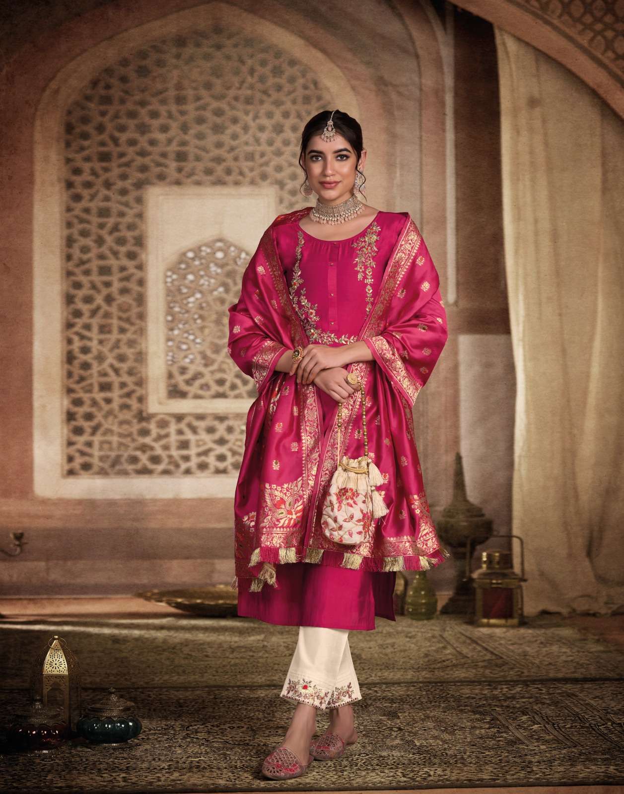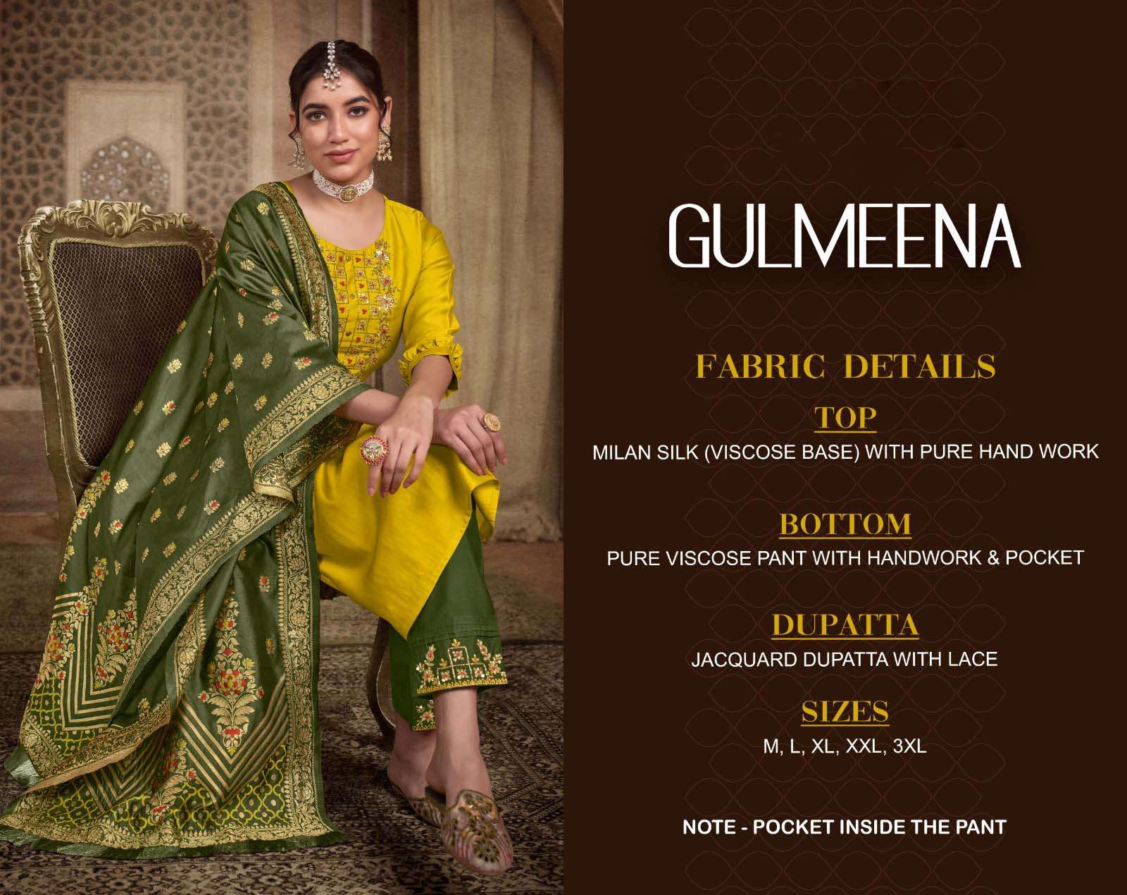 | BOTTOM : | pure viscose pant with handwork & pocket |