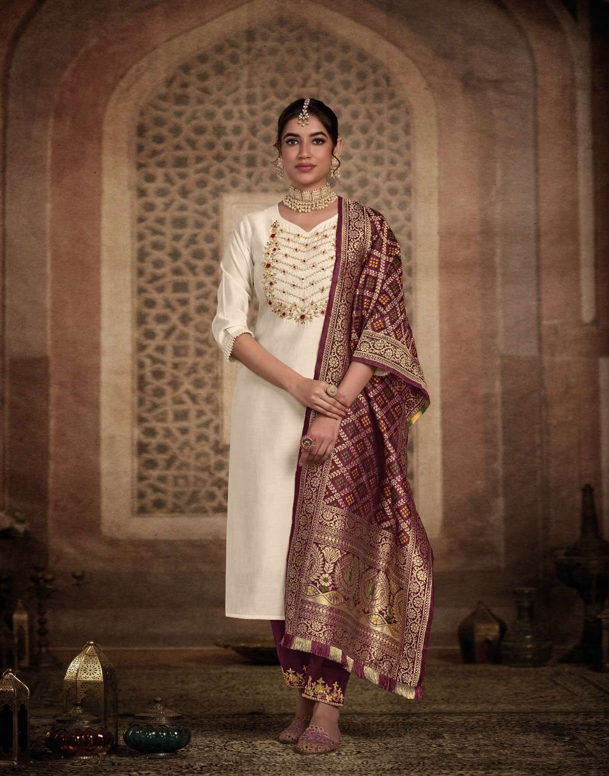 | DUPATTA : | jacquard dupatta with lace |