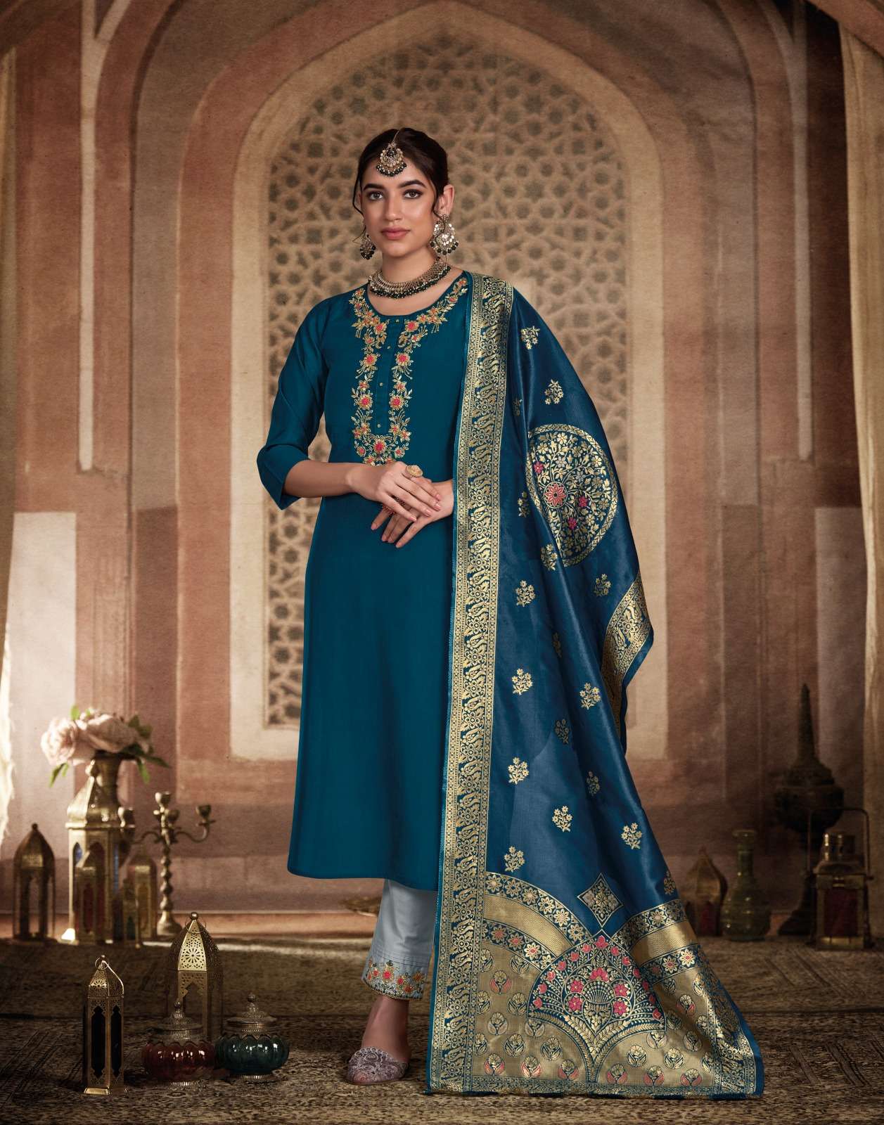 Product Name - satarangi vol 1 passion tree by krisha creation straight cut embroidery kurti pant dupatta set