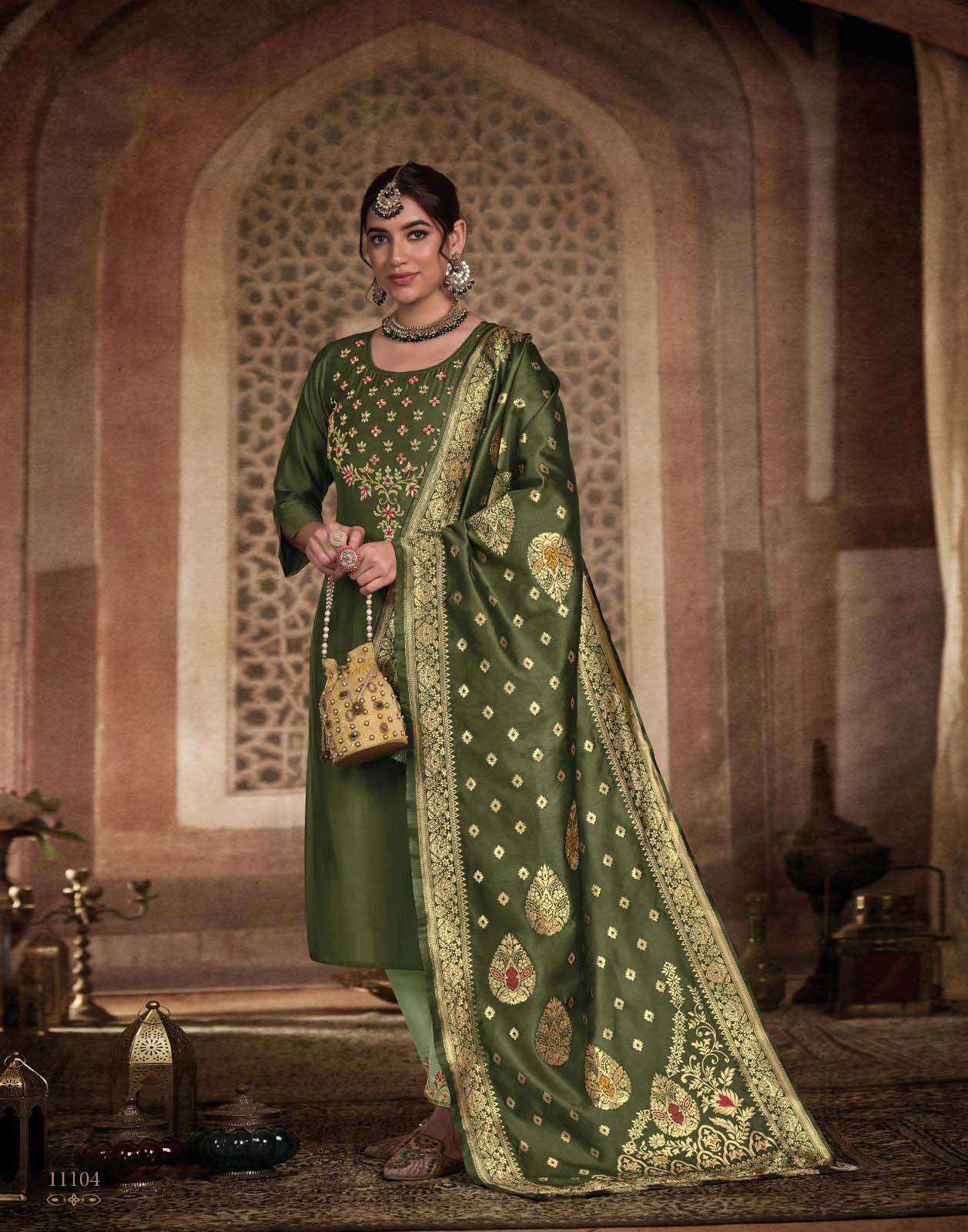 Product Name - kalini vol 1 radhika by krisha pure silk beads work kurti pant dupatta set