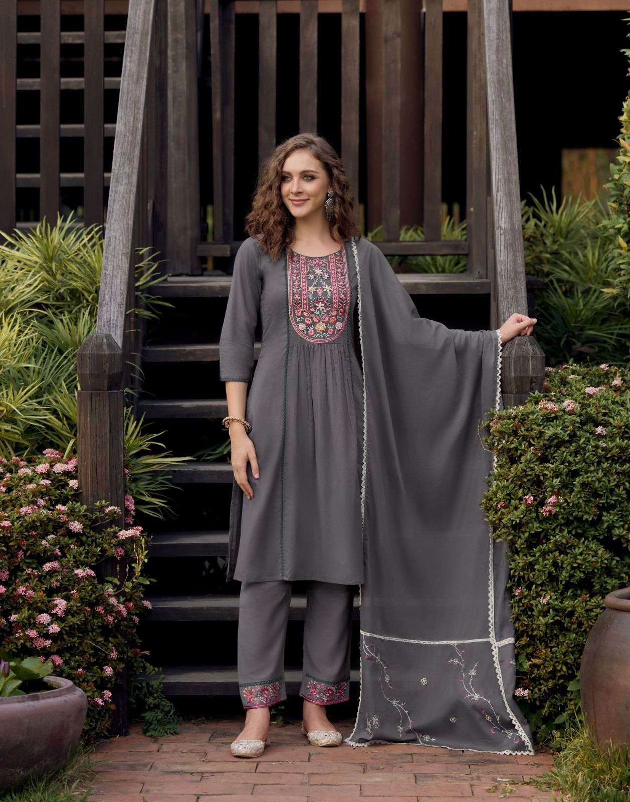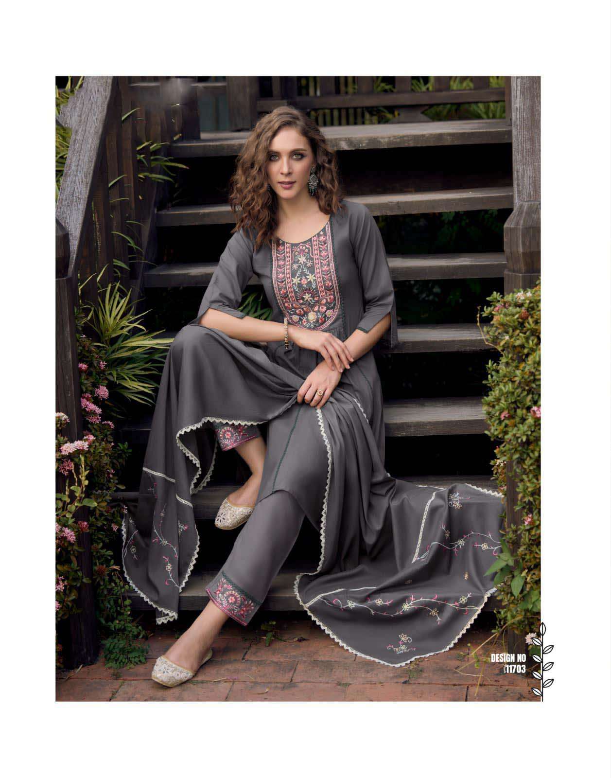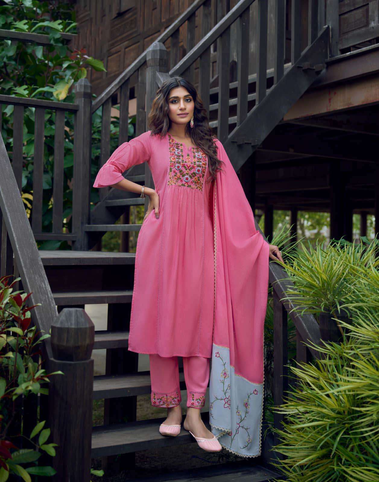 Product Name - anokhi rangoon by krisha creation viscose with embroidery & khatli handwork top with pant dupatta