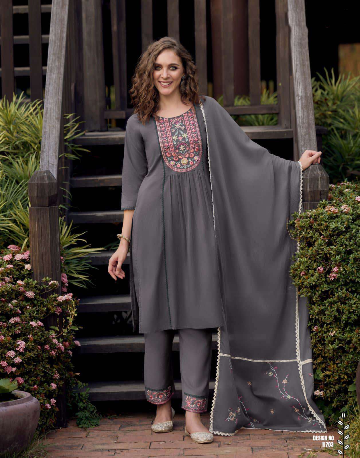 Product Name - satarangi vol 1 passion tree by krisha creation straight cut embroidery kurti pant dupatta set