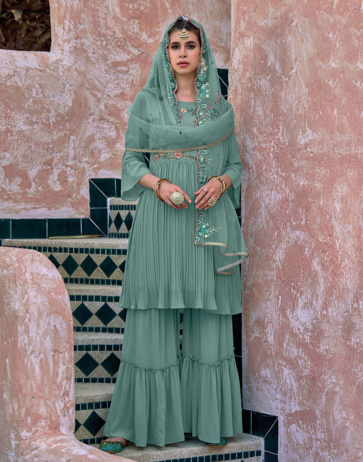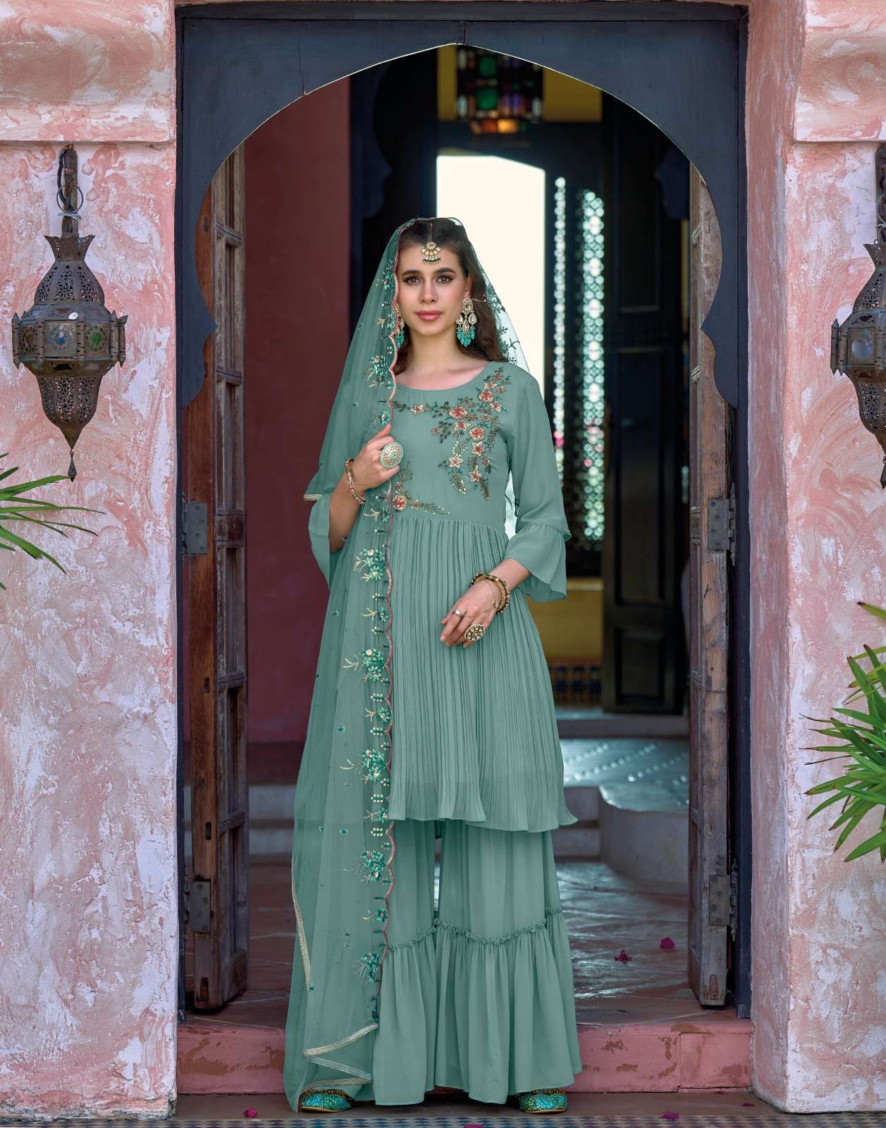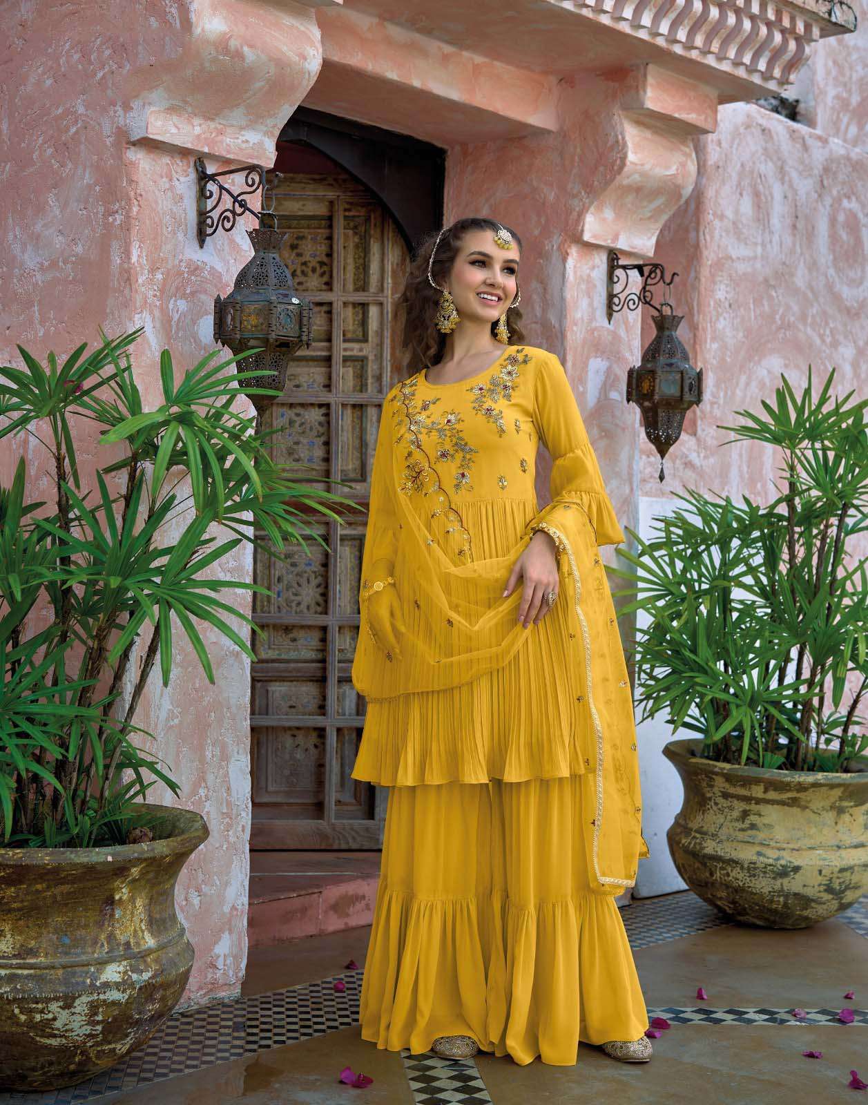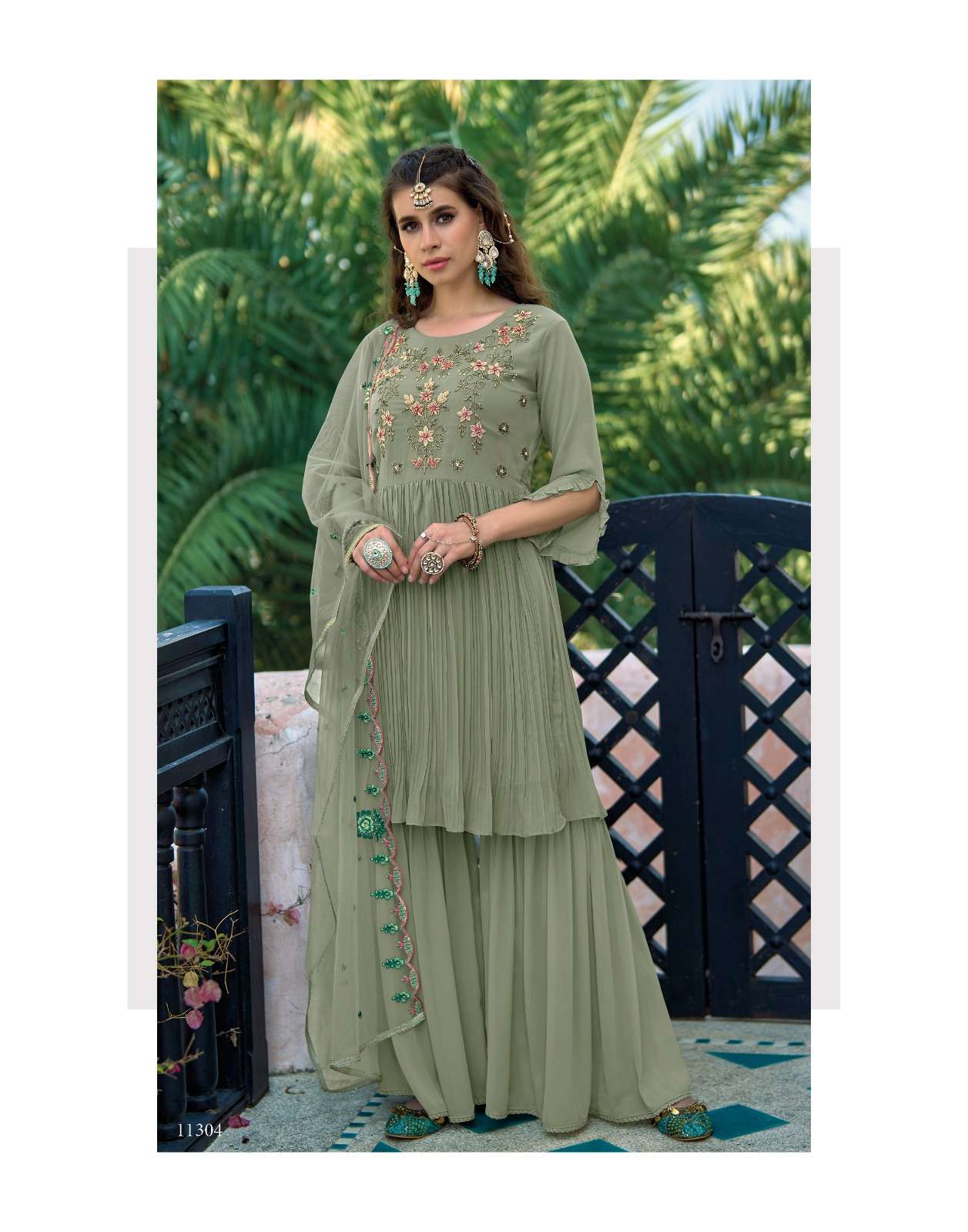 Product Name - Rangoon ketki vol 2 chinon with fancy code & mirror work on top with palazzo and dupatta