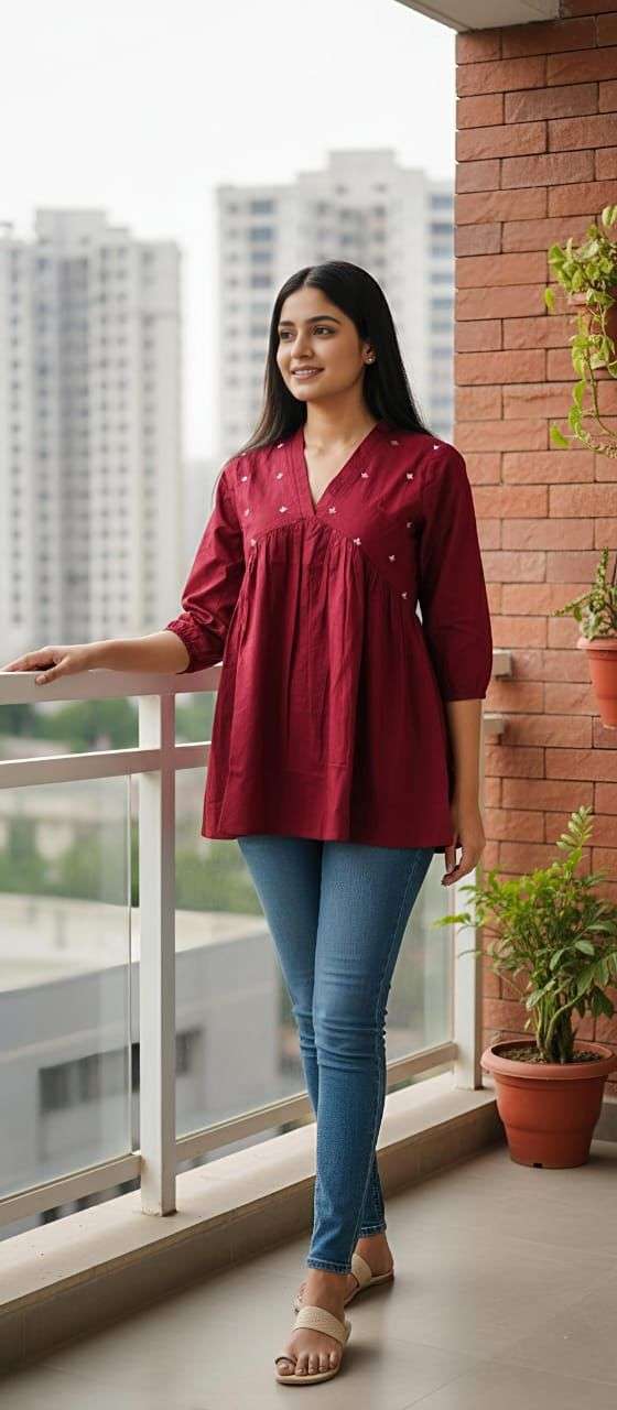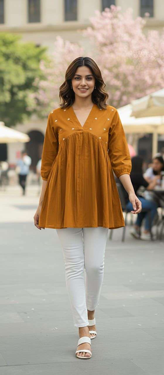 Product Name - Shital beautiful cotton 60 60 embroidery short tops by krisha creation
