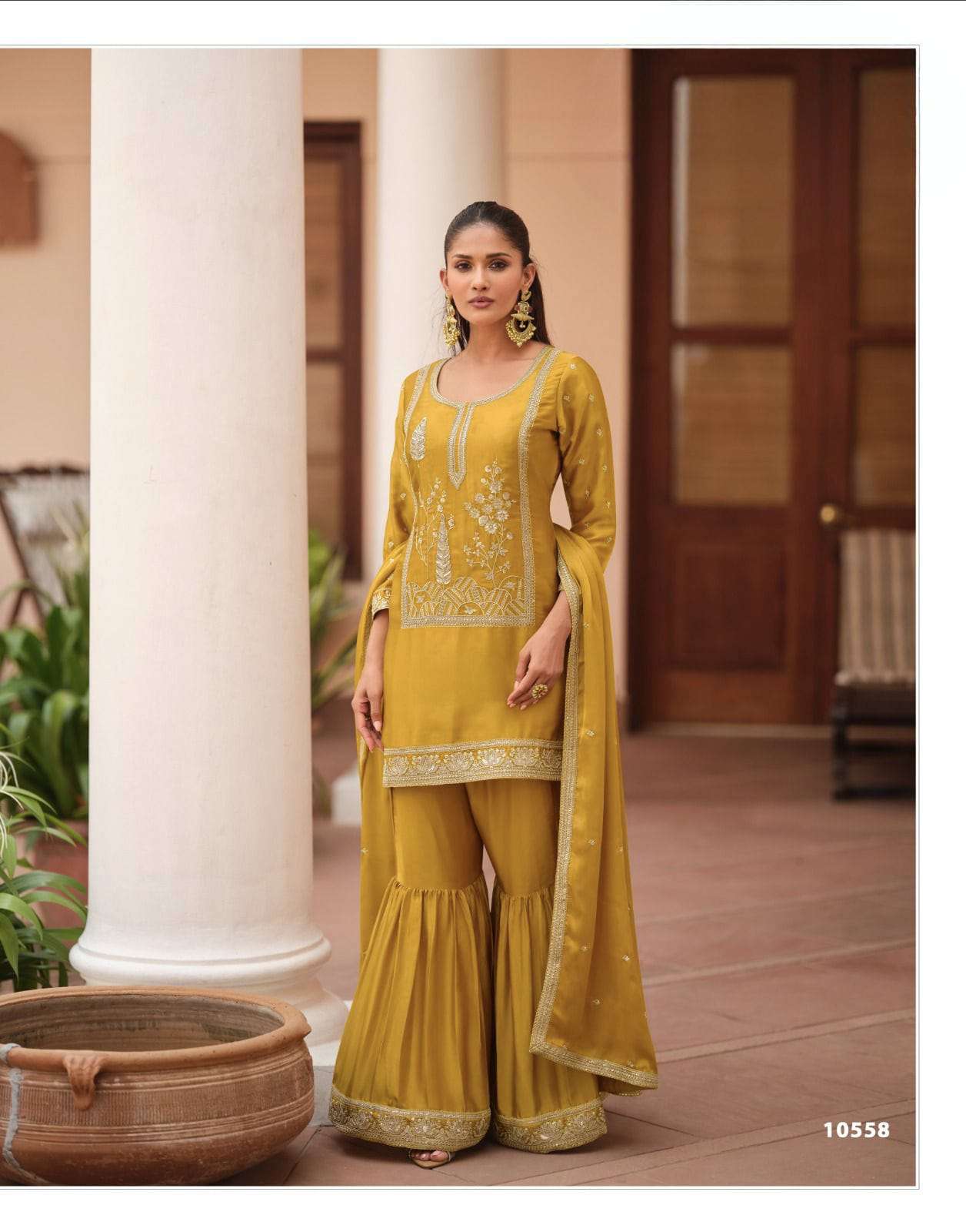Product Name - miiror collection 10311 by sayuri designer premium chinon silk top with sharara and dupatta