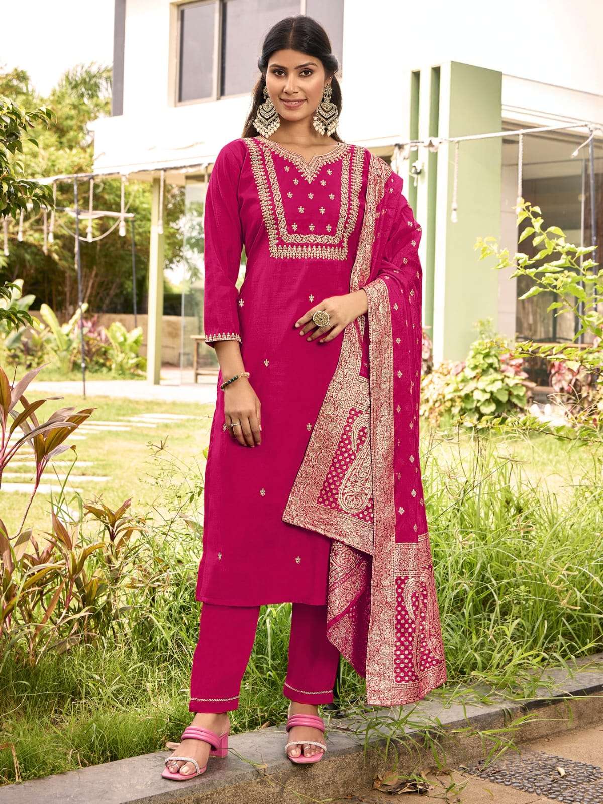 Product Name - anokhi rangoon by krisha creation viscose with embroidery & khatli handwork top with pant dupatta