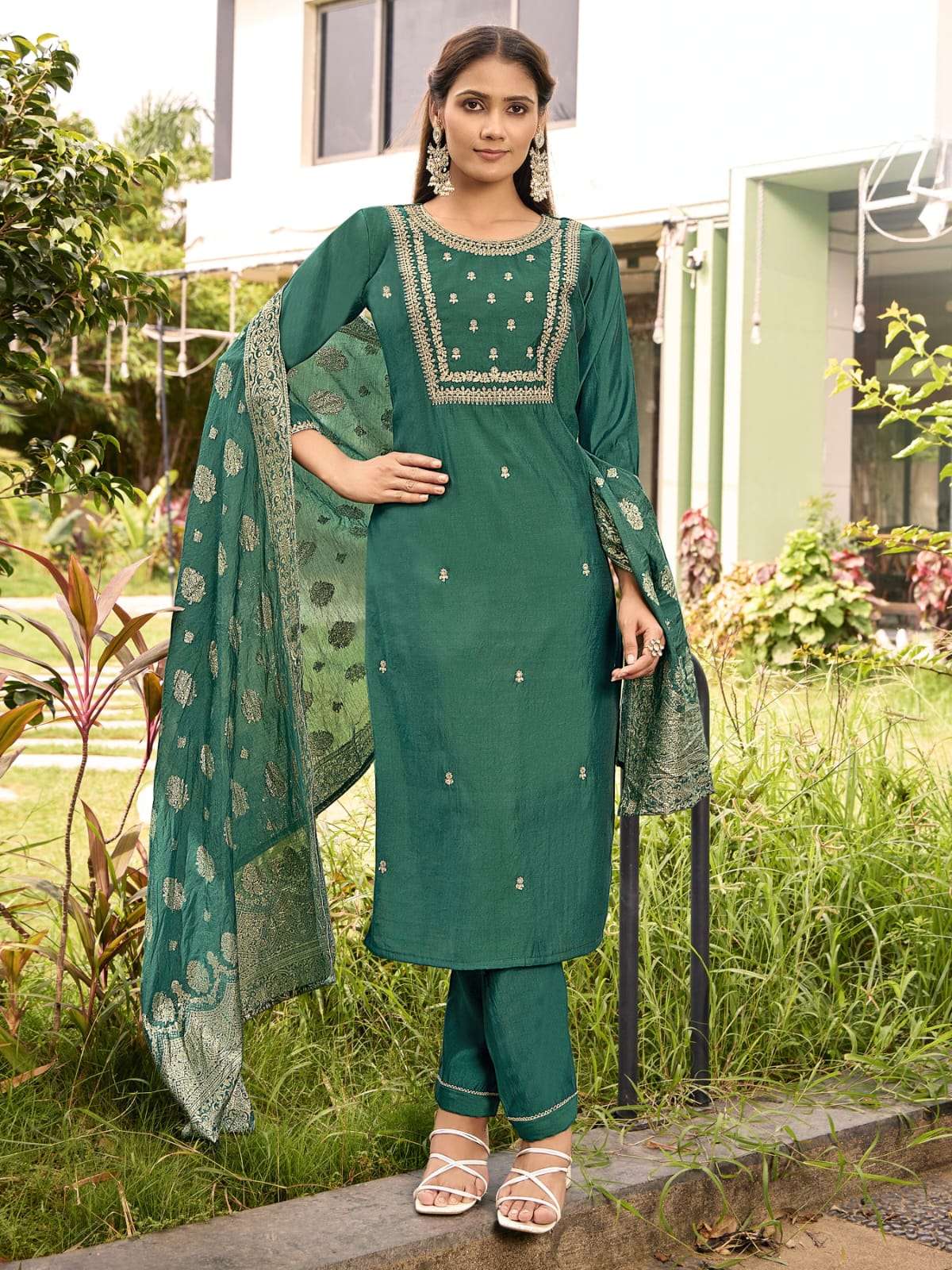 Product Name - satarangi vol 1 passion tree by krisha creation straight cut embroidery kurti pant dupatta set
