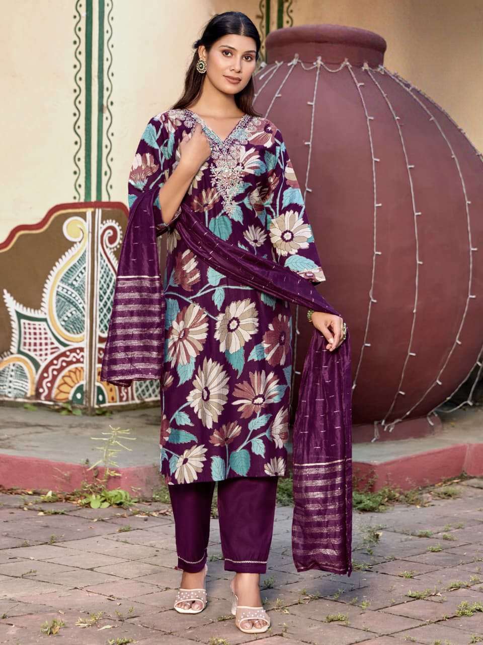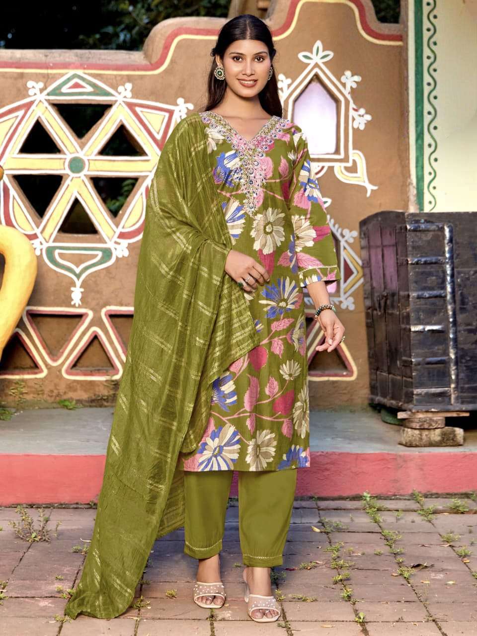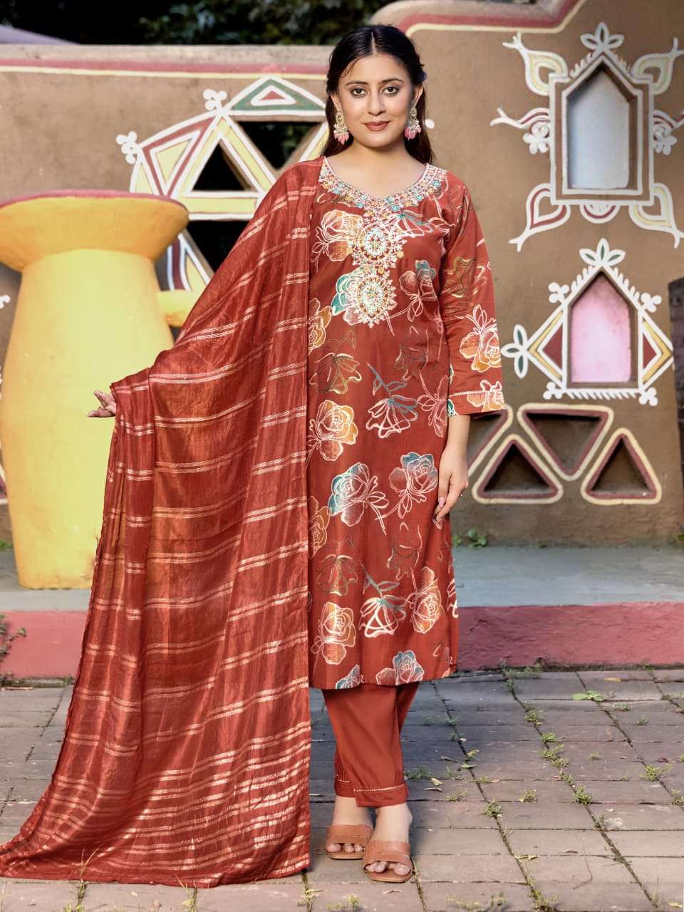 Product Name - anokhi rangoon by krisha creation viscose with embroidery & khatli handwork top with pant dupatta
