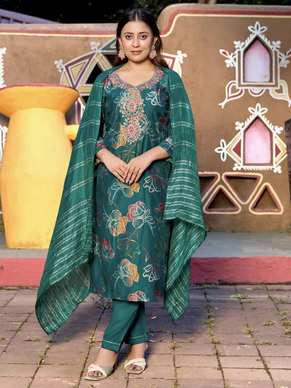 Product Name - satarangi vol 1 passion tree by krisha creation straight cut embroidery kurti pant dupatta set