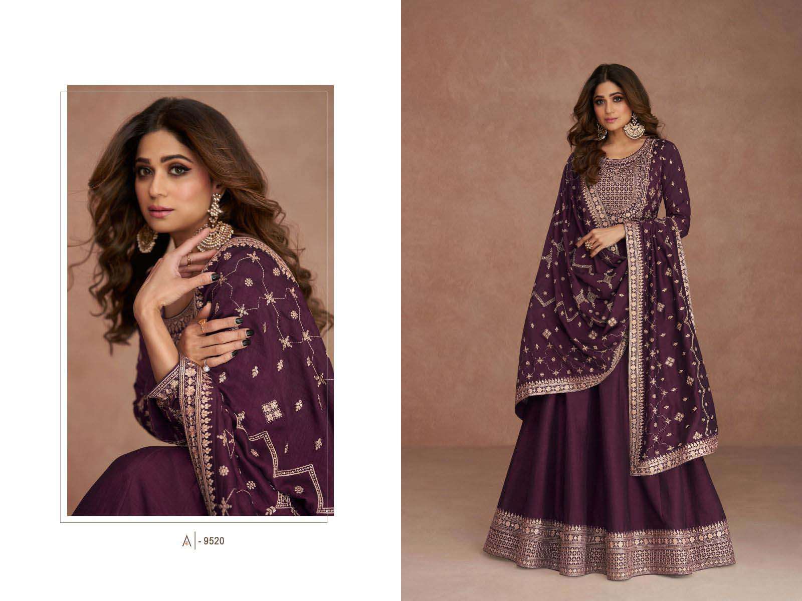 Product Name - sakhi gulkayra real simar silk with heavy embroidery work on Top with palazzo and dupatta