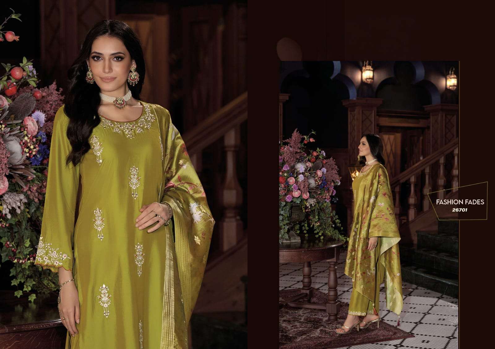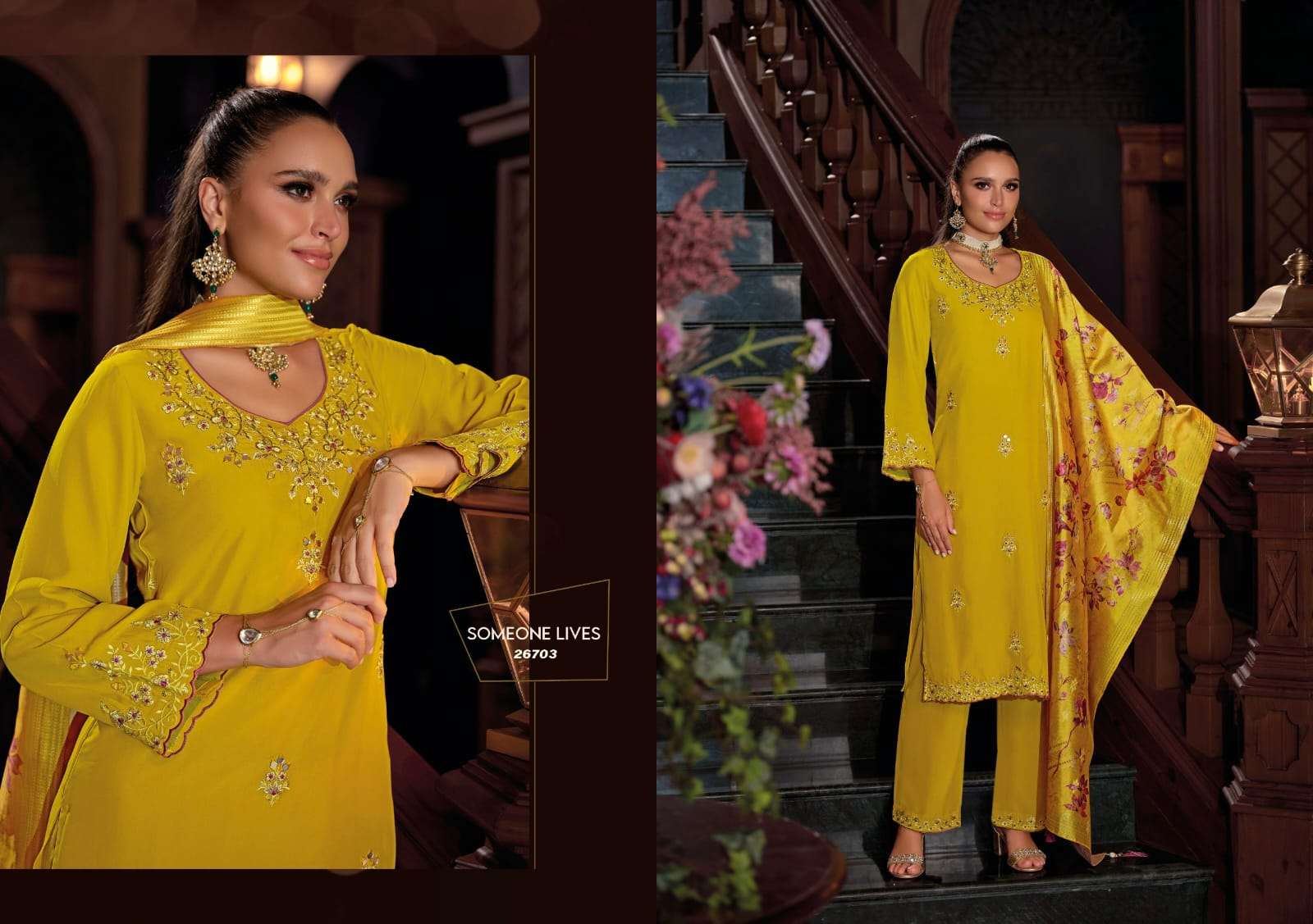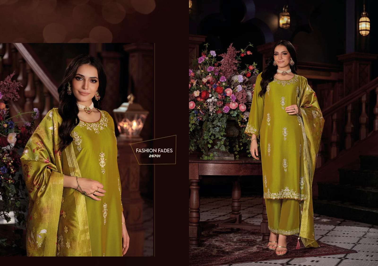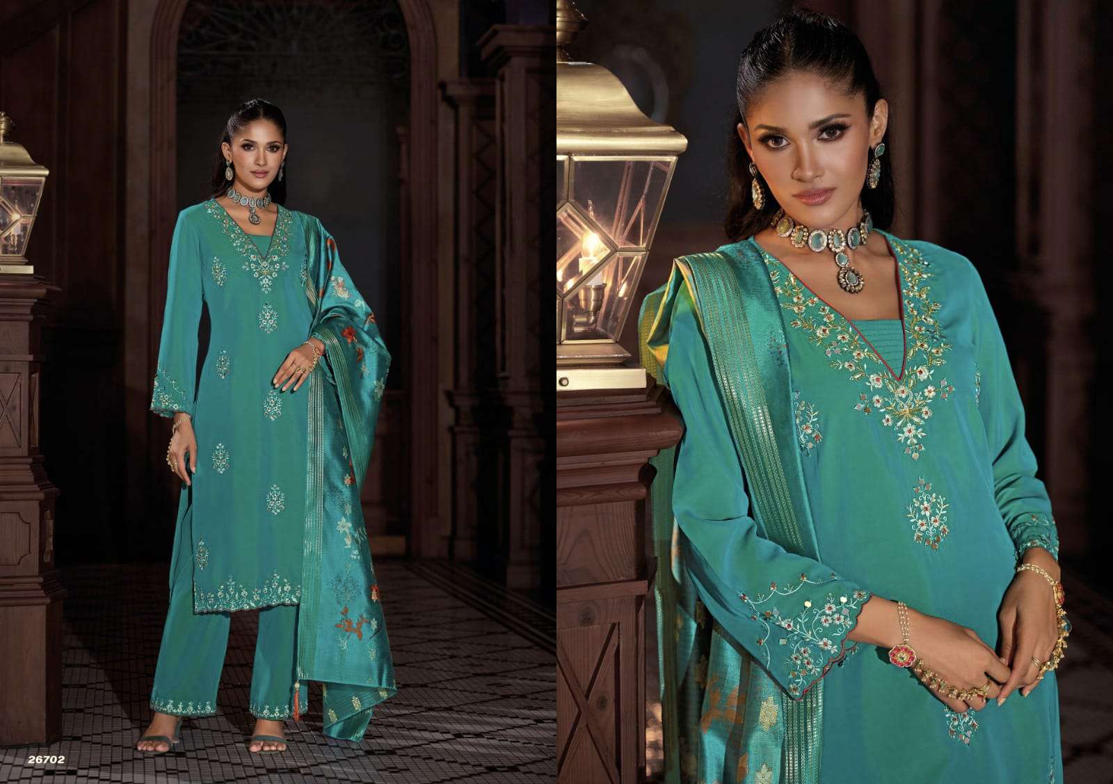 | BOTTOM : | viscose silk plazzo with embroidery |