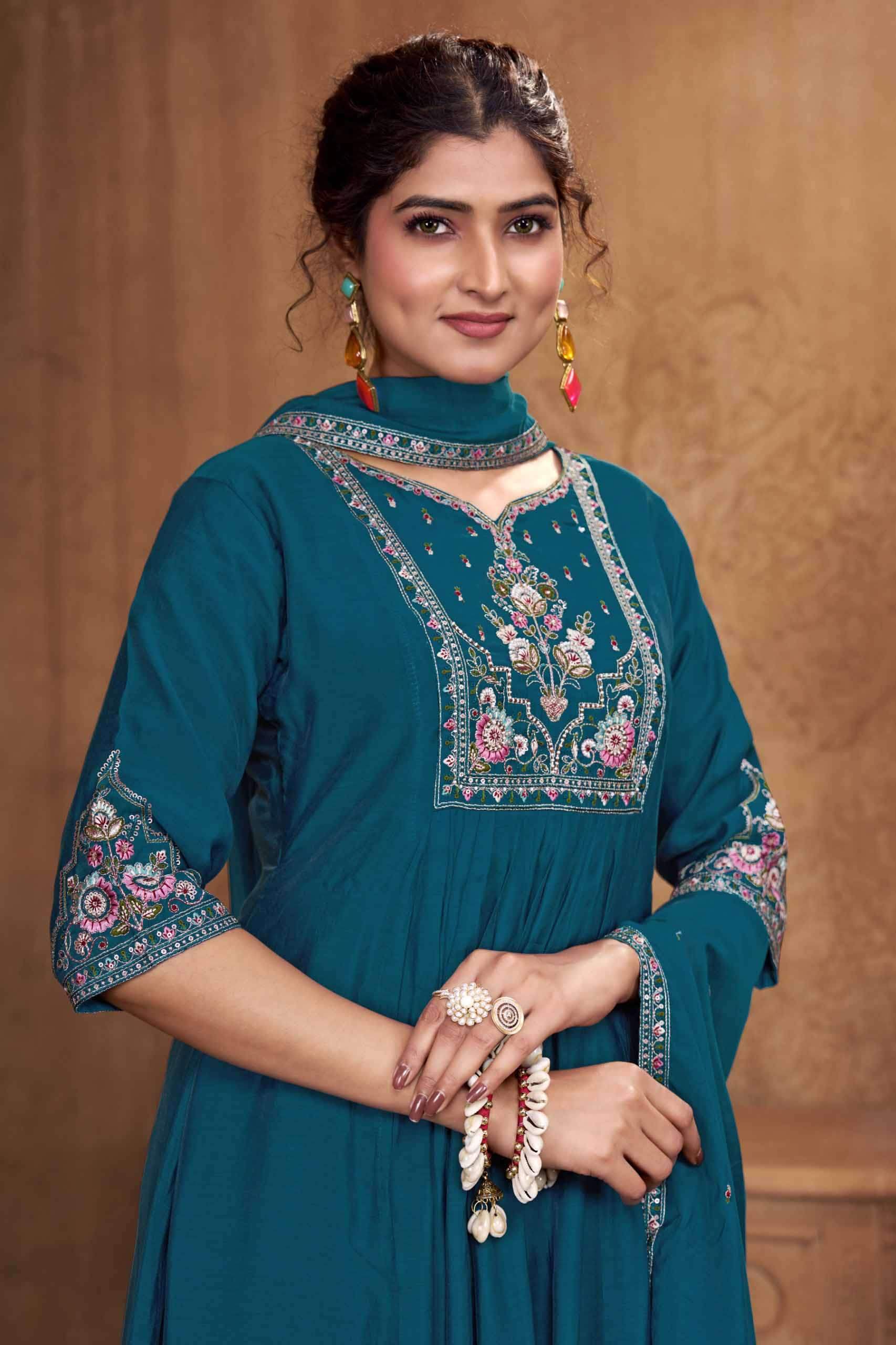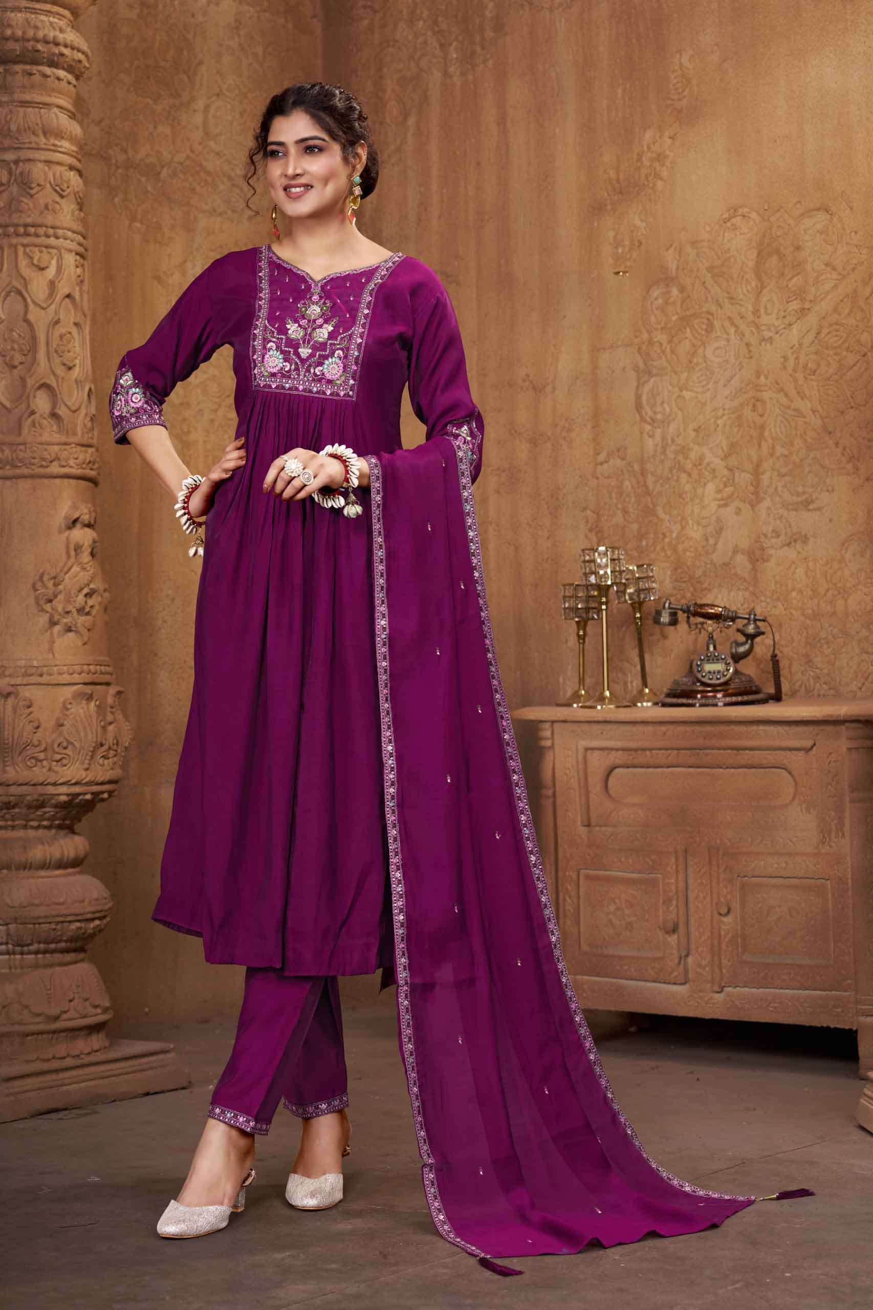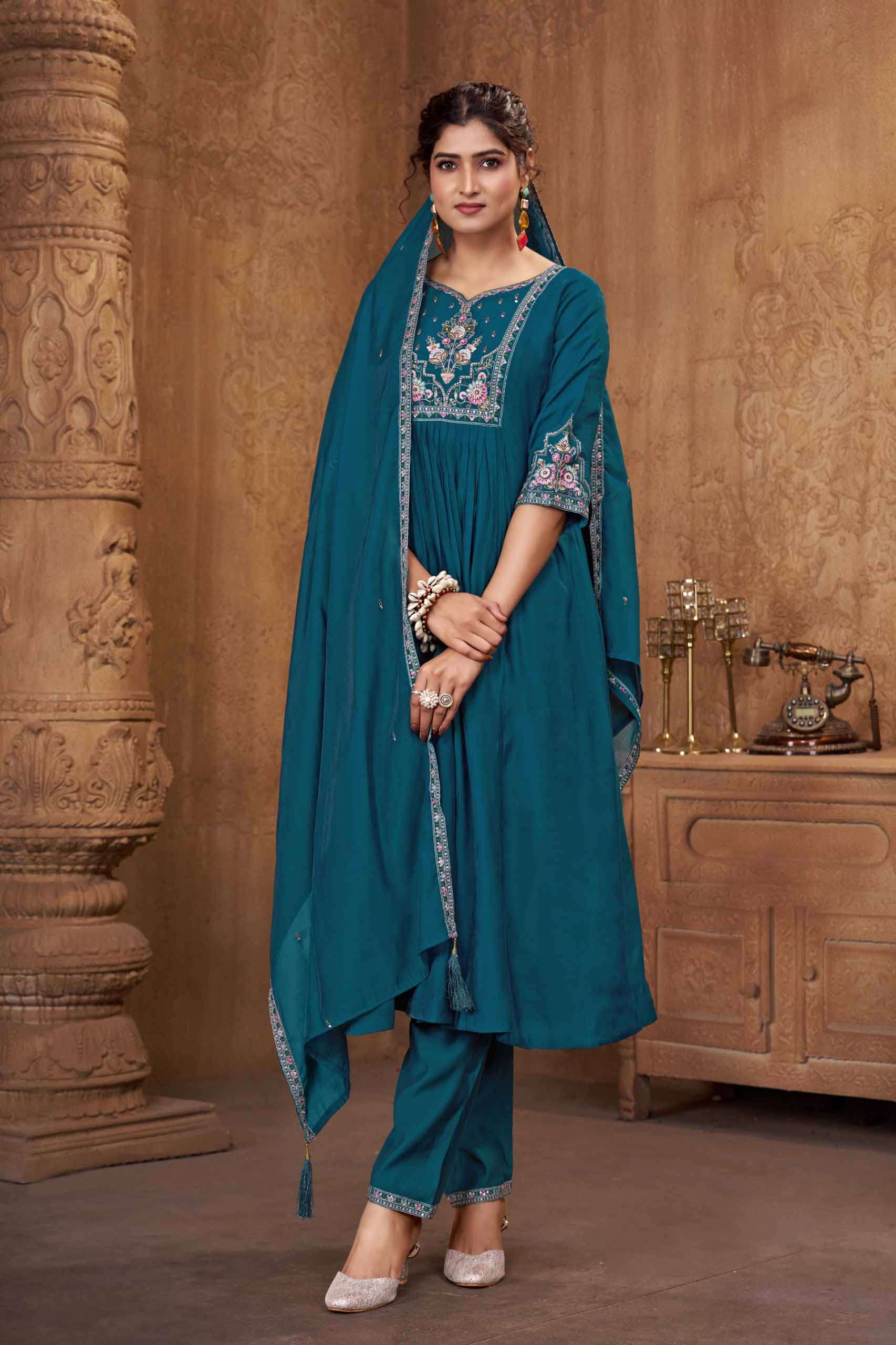 Product Name - anokhi rangoon by krisha creation viscose with embroidery & khatli handwork top with pant dupatta